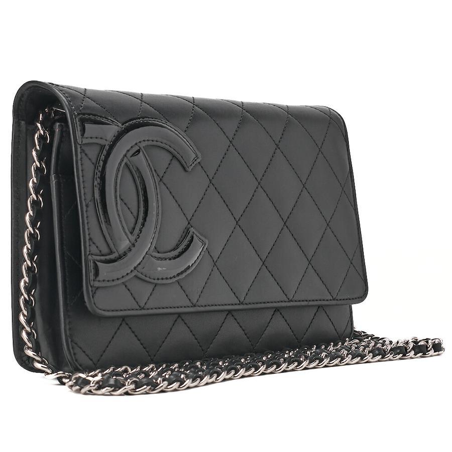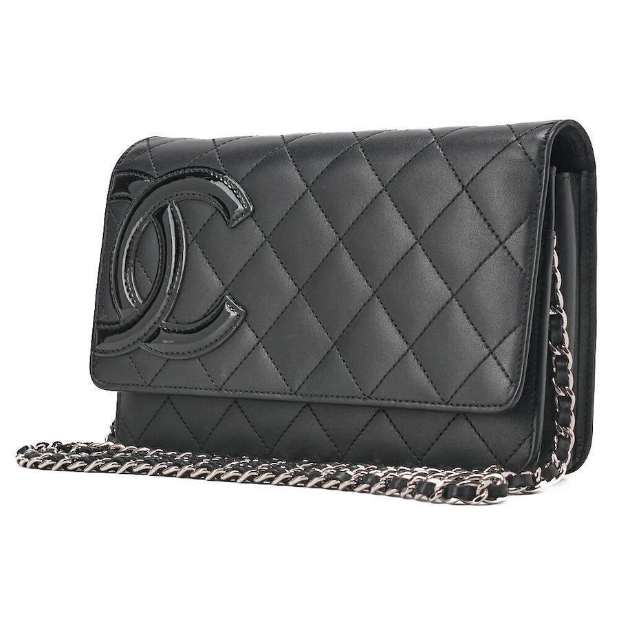CHANEL Cambon Line Chain Wallet Calfskin x Enamel Black (Silver Hardware) Women's Wallet Folding Wallet Women's Wallet [Used]
