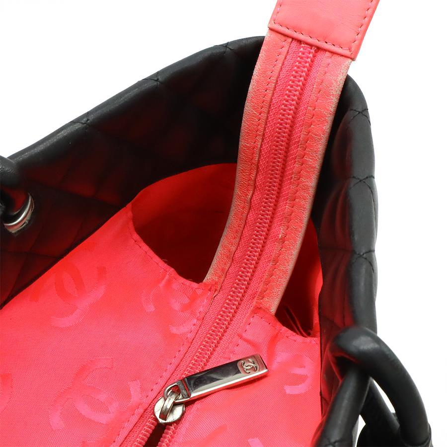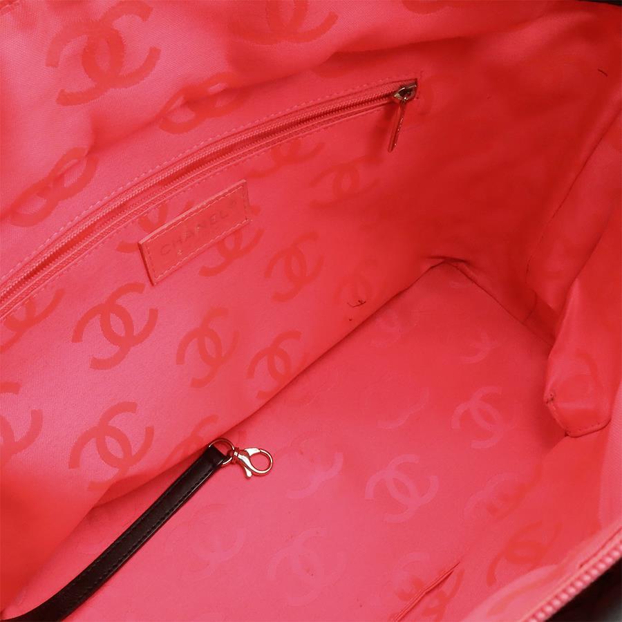 CHANEL Cambon Line Coco Mark Large Tote Shoulder Bag in Soft Calfskin Enamel, Black and Pink, A25169
