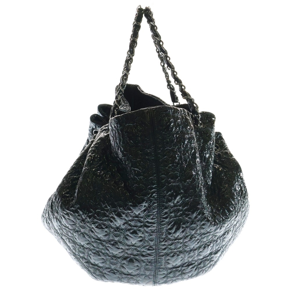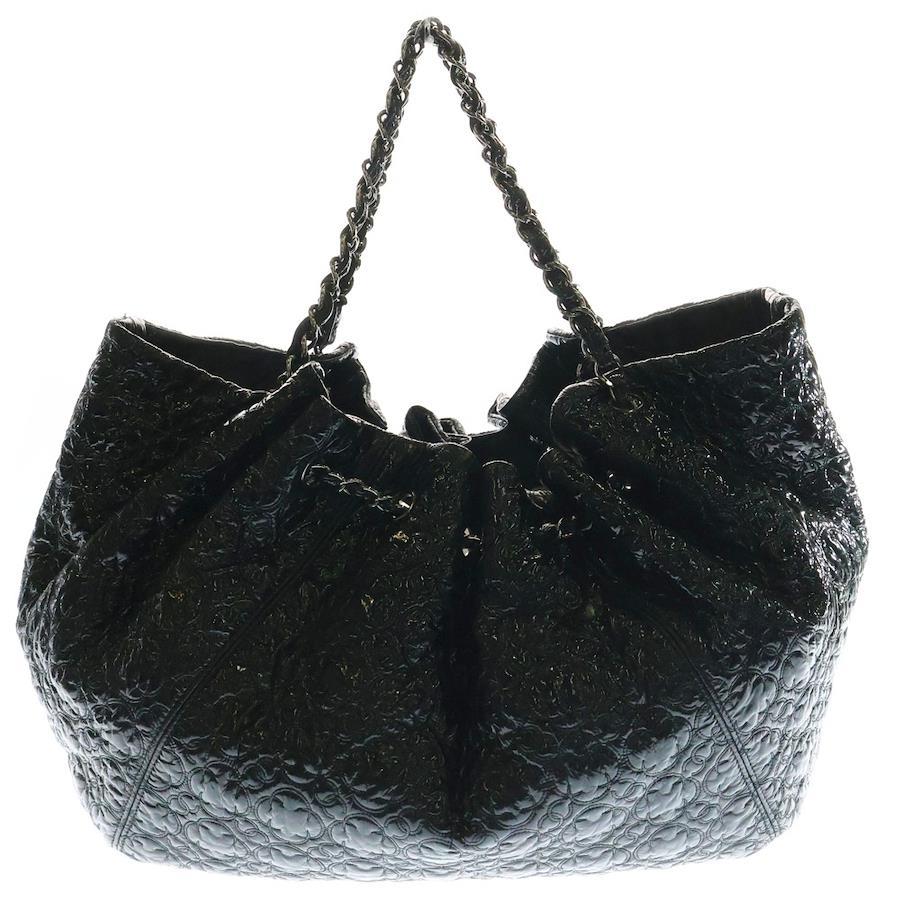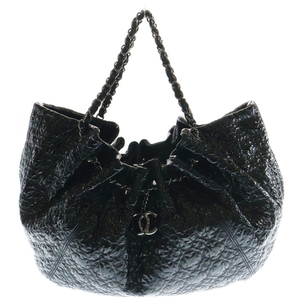 Chanel Camellia Chain Tote Bag Handbag Black Leather with Silver Hardware - Black