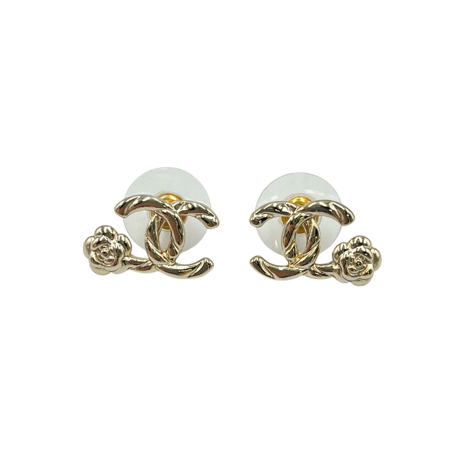 CHANEL Camellia Coco Mark Metal Earrings for Women