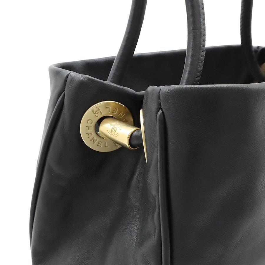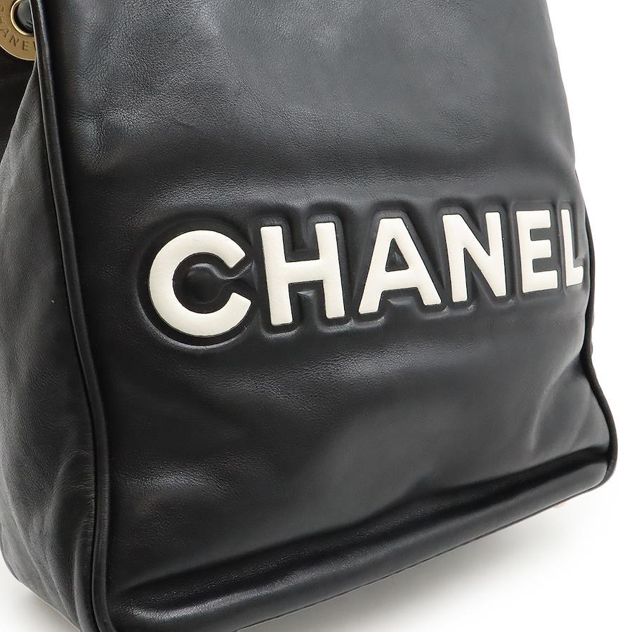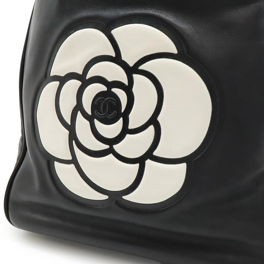 CHANEL Camellia Logo Tote Bag, Shoulder Bag, Leather, Black, White, A20856