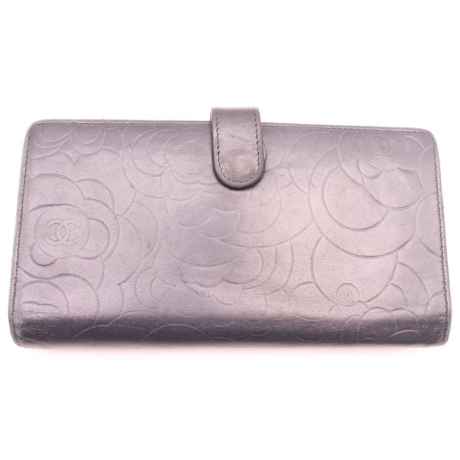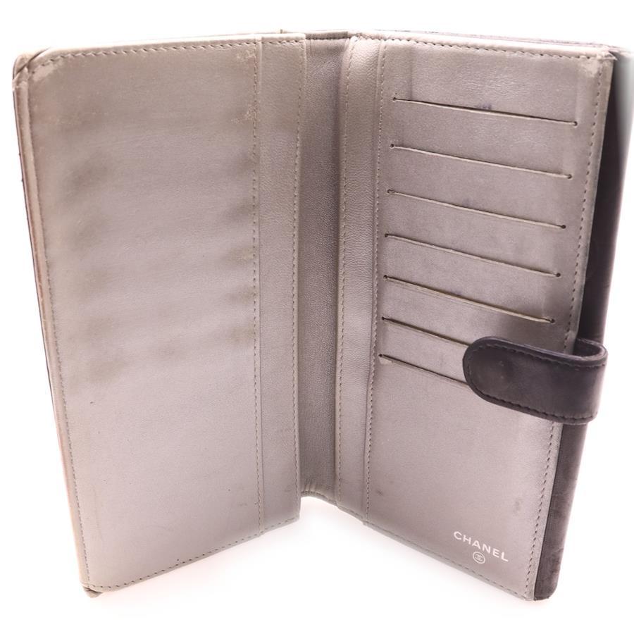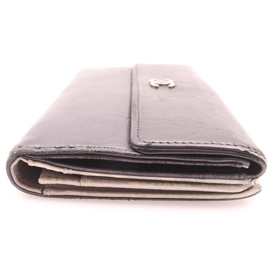 [モデル]カメリア 長財布 ロングウォレット カードケース ブラック シルバー金具 ラムスキン