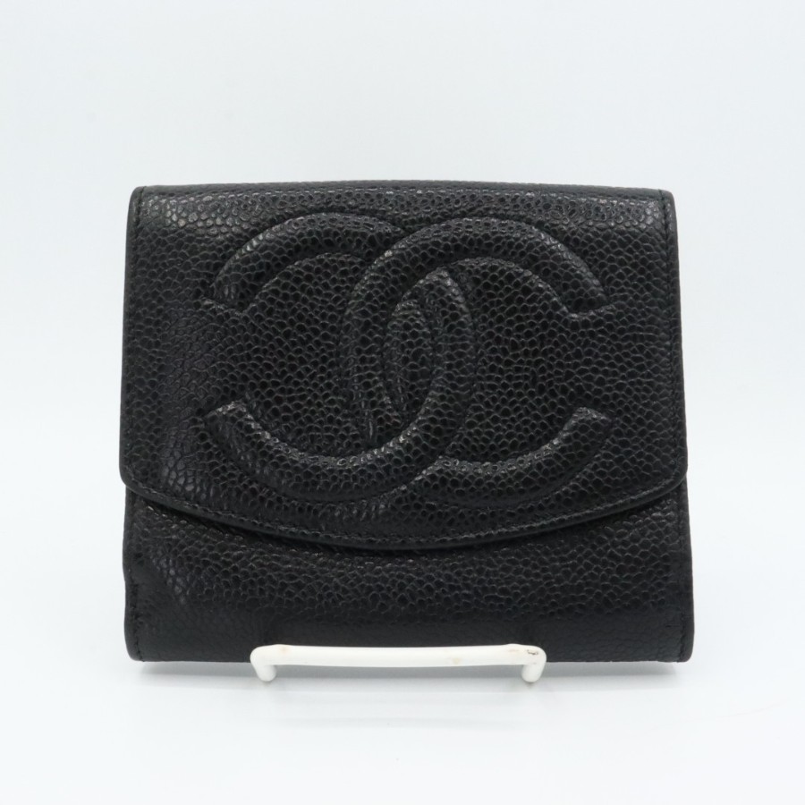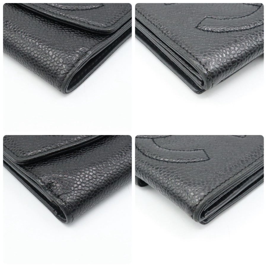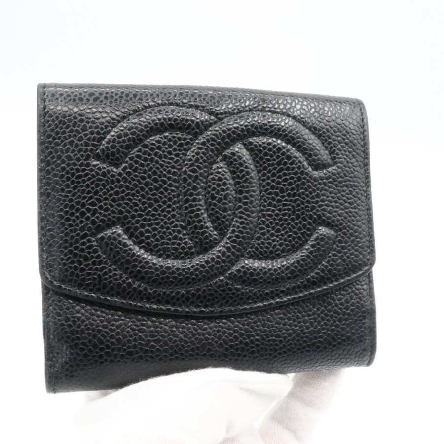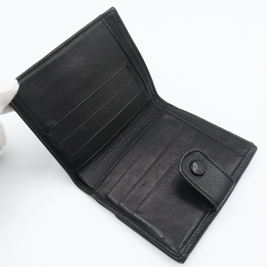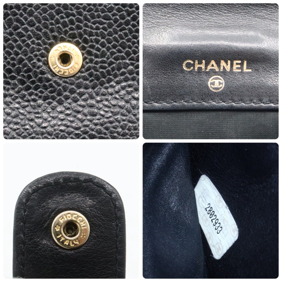 【商品説明】品名 シャネル キャビアスキン ココマーク Wホック 折り財布 ブラックシリアルナンバー 2802933サイズ 約縦10センチ 横11.5センチ 厚み2センチ仕様 小銭入れ1 札入れ1 ポケット2 カード入れ6付属品 ギャランティカード【商品状態】剥がれ、ベタつきありません。小銭入れに補修があります。ボタンしっかりとまります。若干のスレ、ヨレがあります。届いたらすぐに気持ちよくお使いいただけるコンディションです。この機会に是非お買い求めください