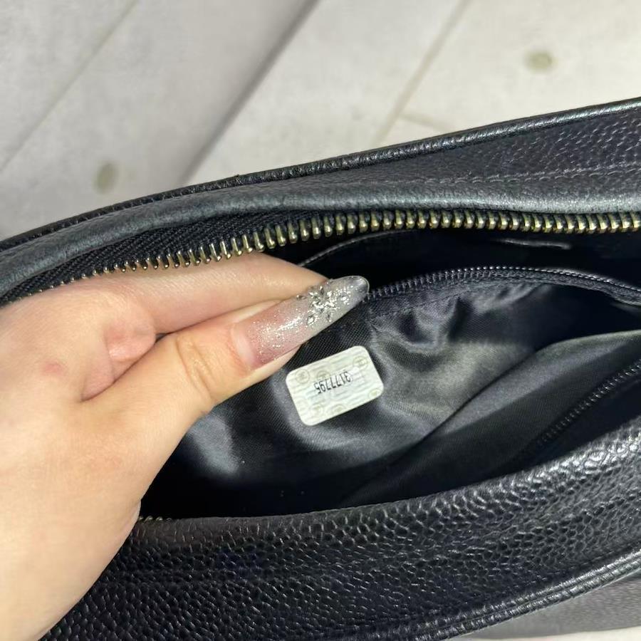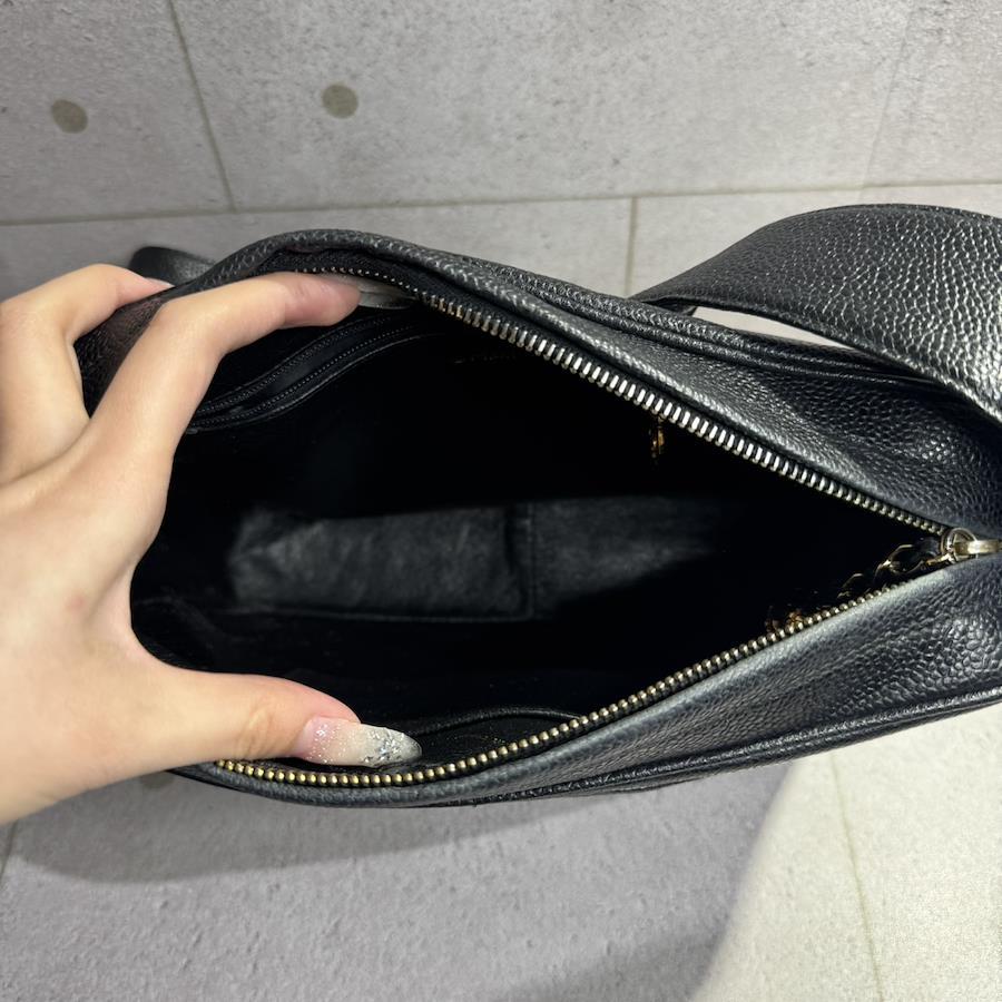ブランド名:シャネル素材:キャビアスキンサイズ:約 H 27cm×W 19cm×D 7.5cmチェーン長さ:約 110cm年代:8番台 2003年ー2004年製造付属品:ギャランティカード、シリアルシール、保存袋状態:Aランク 使用感の少ない綺麗な中古品
