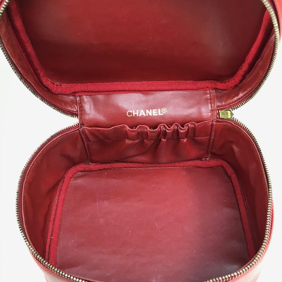 【商品説明】型崩れしにくく上質感のあるキャビアスキン素材のバニティバッグです。見た目もコロンとして可愛らしく、収納力も充分あります。レッドカラーがぱっと目を惹き華やかな美しさを演出し、貴方の日常にさらなるエレガンスを与えてくれますよ。