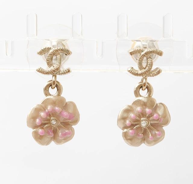 シャネルより、ココマークとサクラのプレートがモチーフのピアスです。女性らしい印象のデザインで、華やかな雰囲気に。耳元で可愛くスイングします!あわせやすく、耳元のアクセントに、クールに決まります!