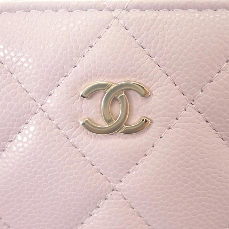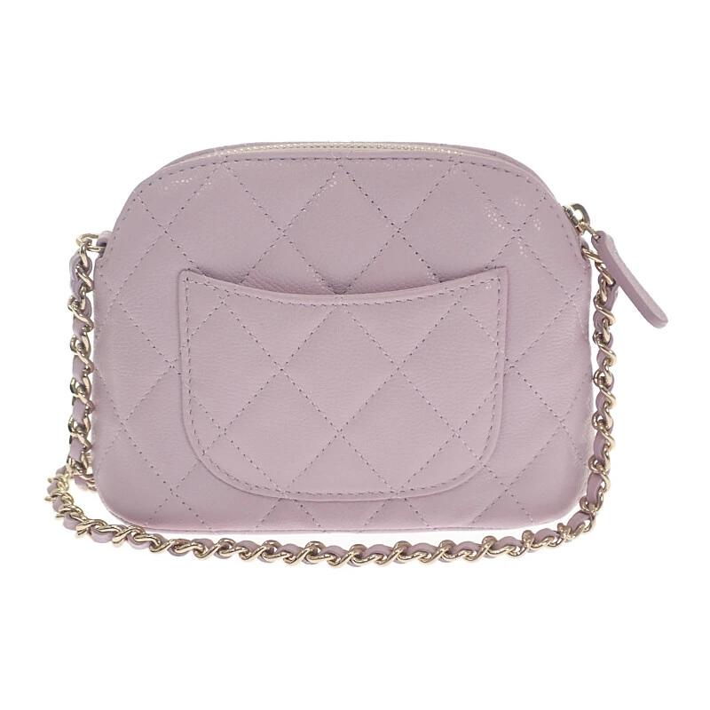 しっかりとした質感と耐久性を誇るキャビアスキンレザーに、シャネルの象徴であるココマークがあしらわれたデザインは、クラシカルでありながらも鮮やかなパープルカラーで洗練された華やかさを演出します。チェーンストラップ付きで、クラッチとしてだけでなく、ショルダーやクロスボディとしても活躍。コンパクトながらもマチ付きで、スマホやカードケース、リップなどの必要最低限のアイテムをスマートに収納可能です。