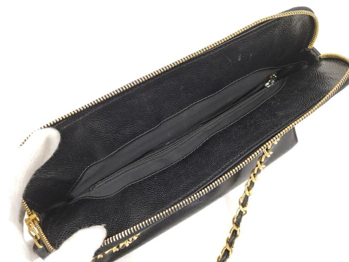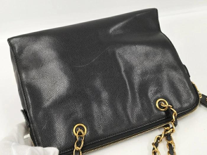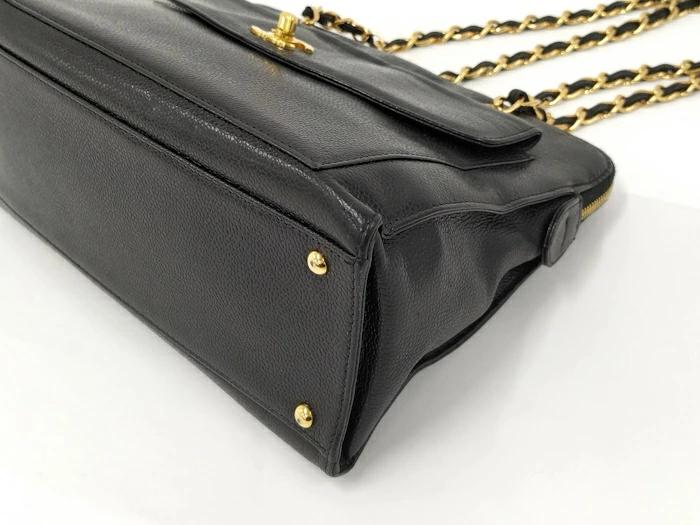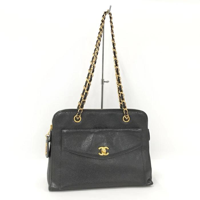 CHANEL Chain Shoulder Bag Coco Mark Turn Lock Leather Black