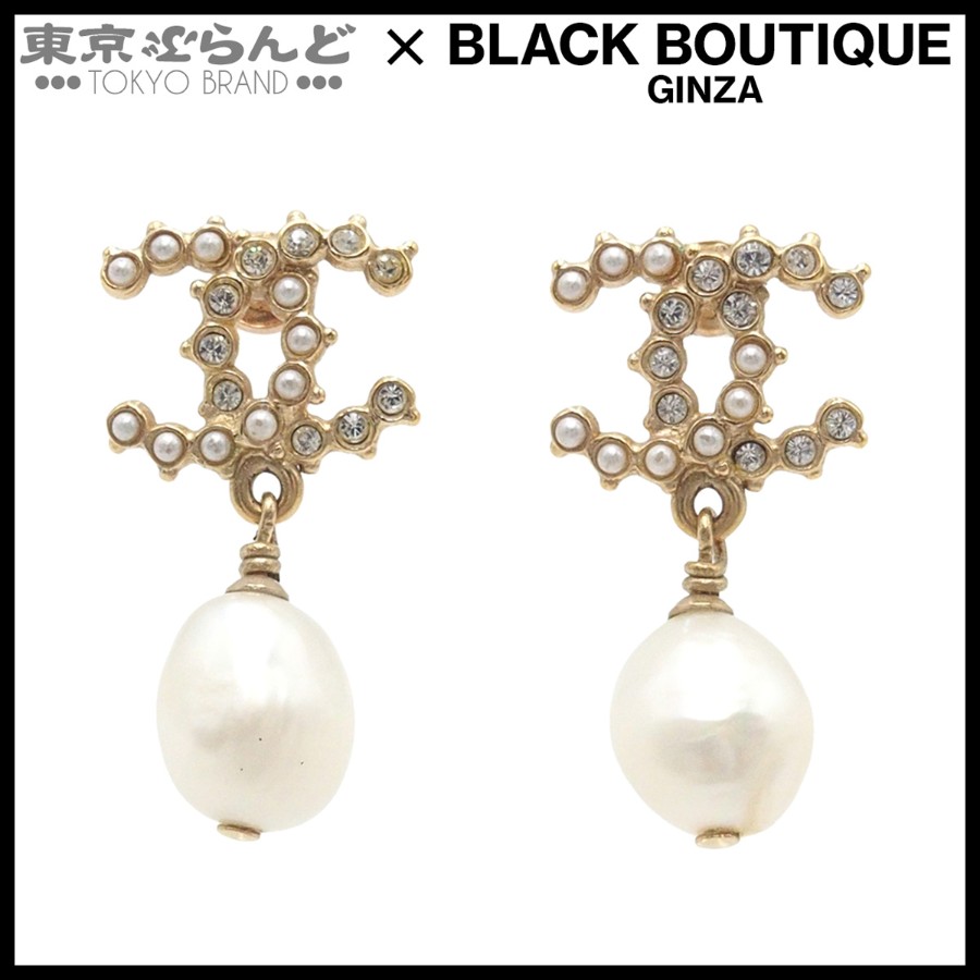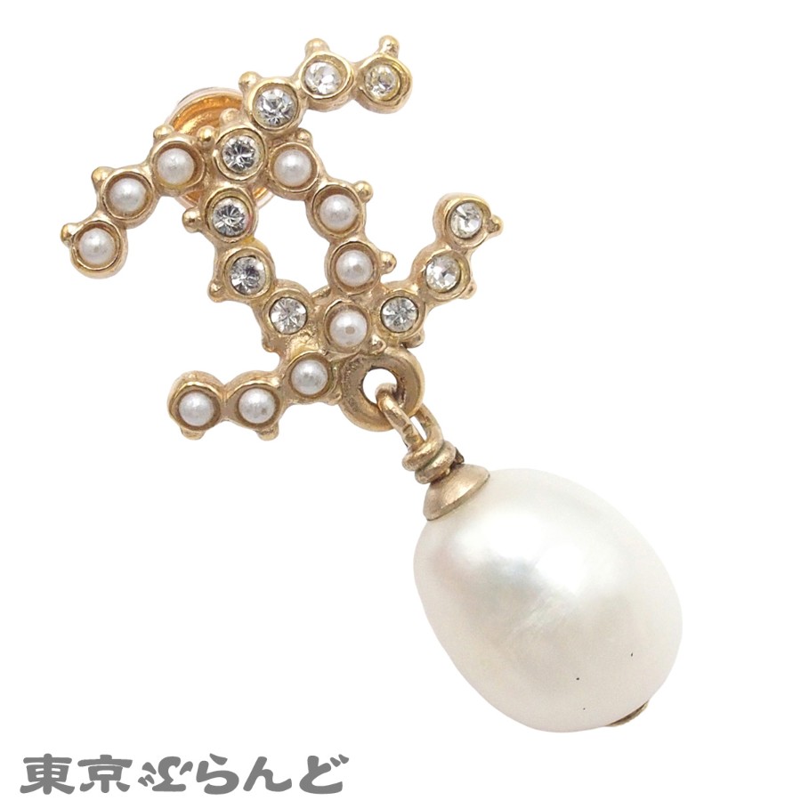 Chanel CHANEL Swing Earrings, Coco Mark, Gold Metal, Costume Pearl, Rhinestone, A20B, Women's