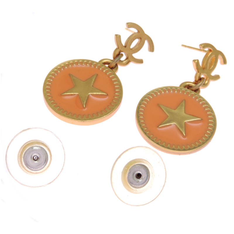 Brand Name: CHANELProduct Name: Star Stud Earrings GPSize: Approx. 25.0mm x 18.0mm*Actual measurementsMaterial: GPAccessories: Storage boxCondition: Used: BMetal: Slight dents, discolorationCatch: Dirt, yellowingShows signs of use, but available at a great price.