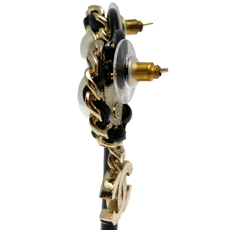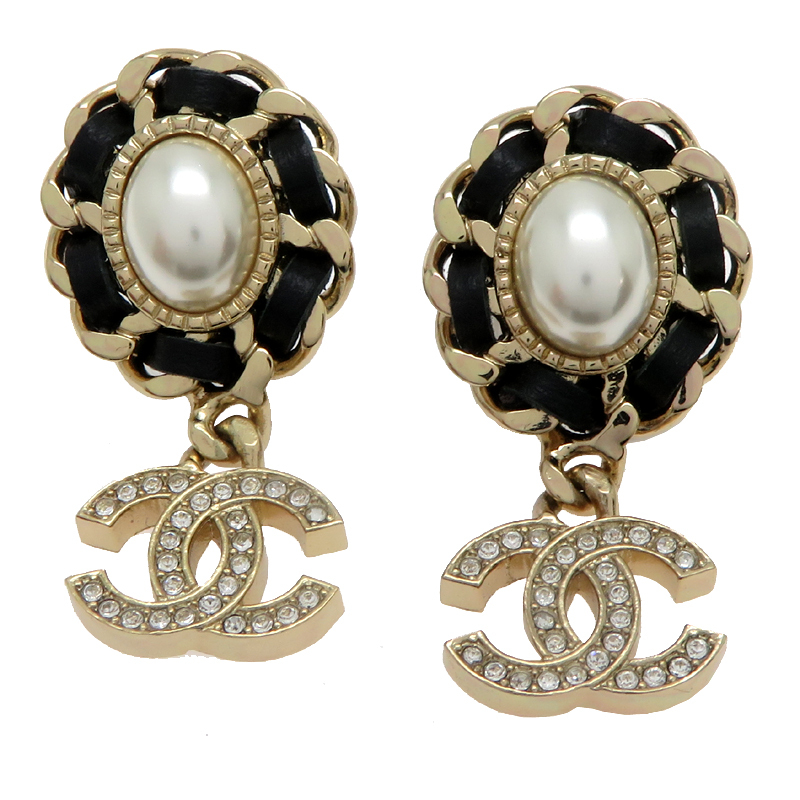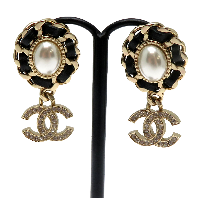 CHANEL Chanel Coco Mark Chain Faux Pearl B21B Earrings GP P0064155