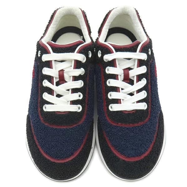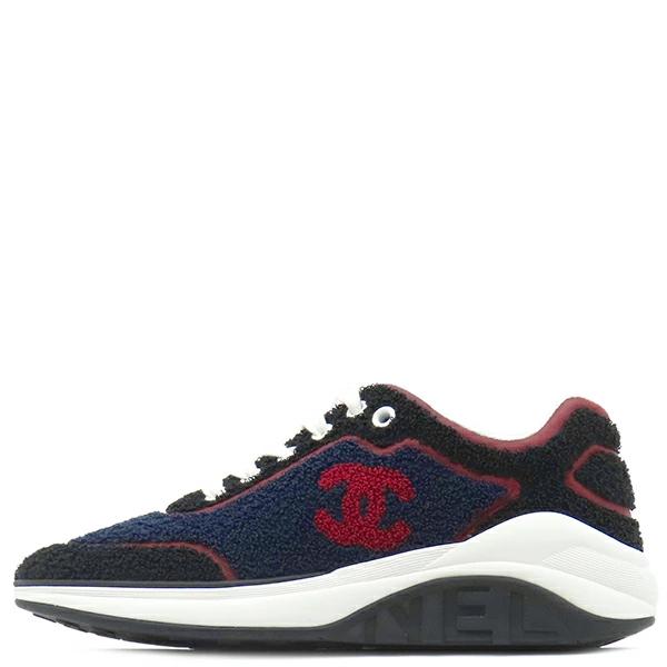 シャネル CHANEL スニーカー ココマーク パイル パイル レザー ネイビー×ブラック×レッド 黒 紺 赤 G36256 #36 レディース 【箱】定番 人気 美品 【中古】