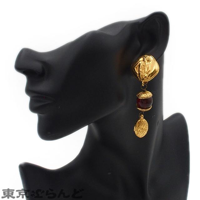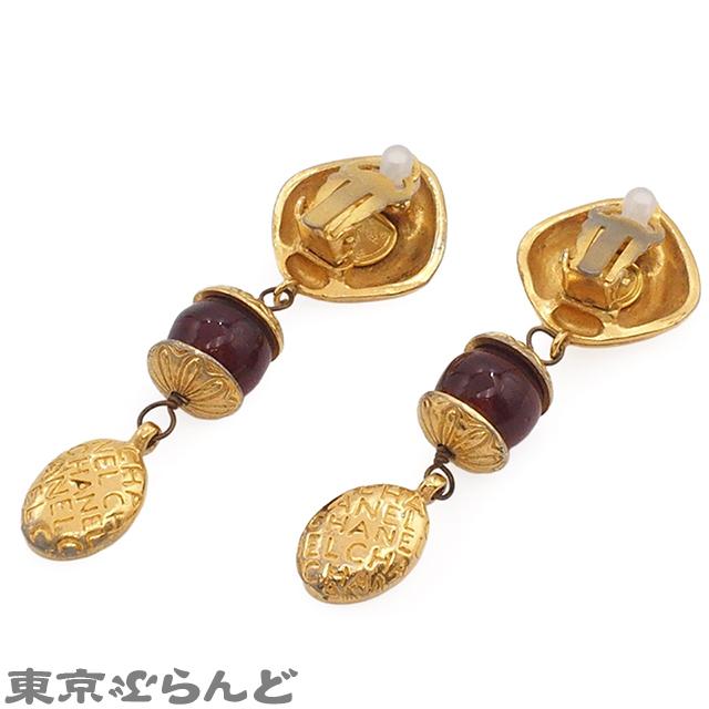 CHANEL Earrings, Gold and Red Metal Gripoise, Women's Vintage
