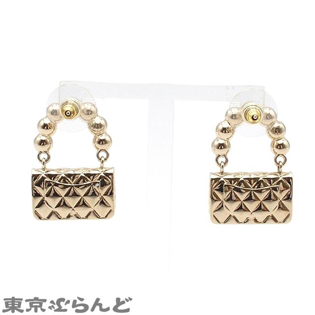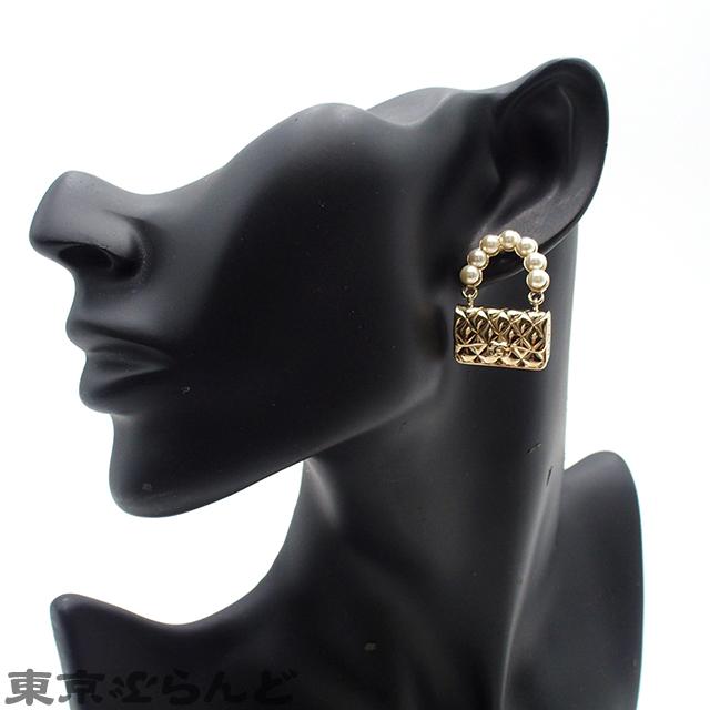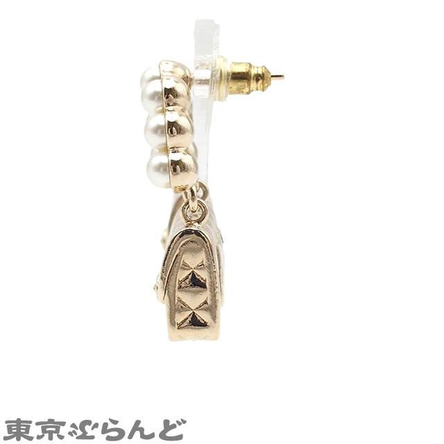 CHANEL CHANEL Earrings, Gold Metal with Faux Pearls and Bag Motif, B21C, Costume Jewelry, Women's, P0044207