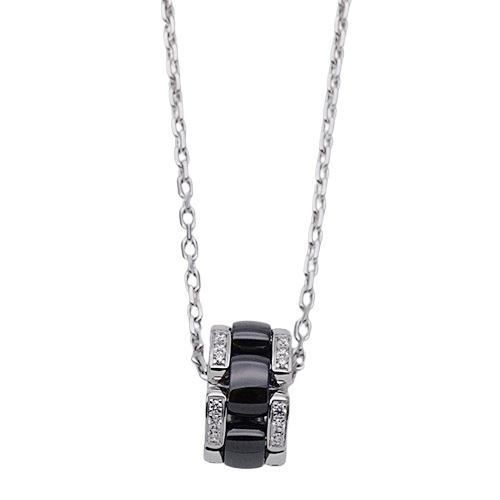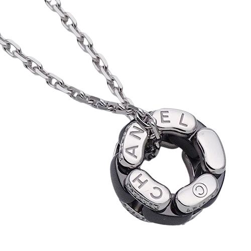 CHANEL Necklace Women Brand 750WG Diamond Black Ceramic Ultra White Gold J3173 Jewelry