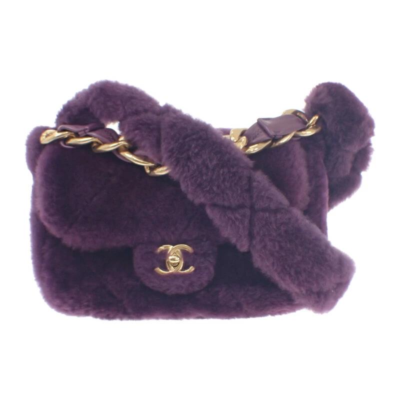 紫色のシアリングファーにココマークのターンロック金具がアクセントになったアイテム。
