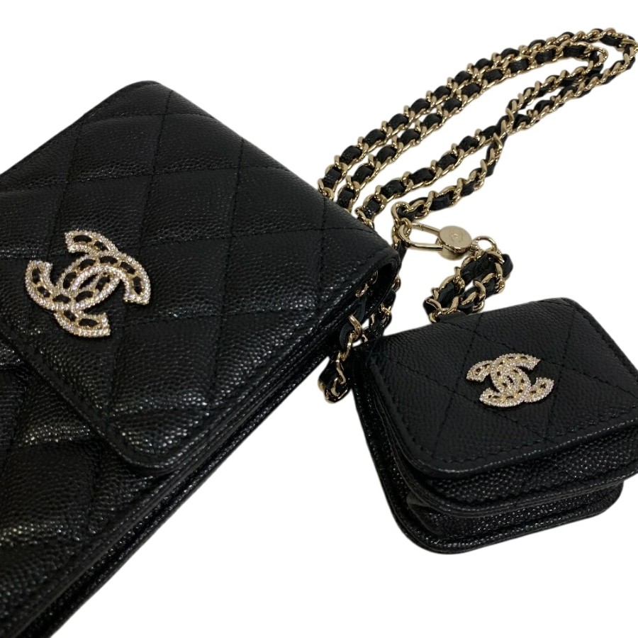 | 商品名 | CHANEL/シャネル ショルダーポーチ AirPodsケース マトラッセ ココマーク ラインストーン ショルダーバッグ ブラック レディース |