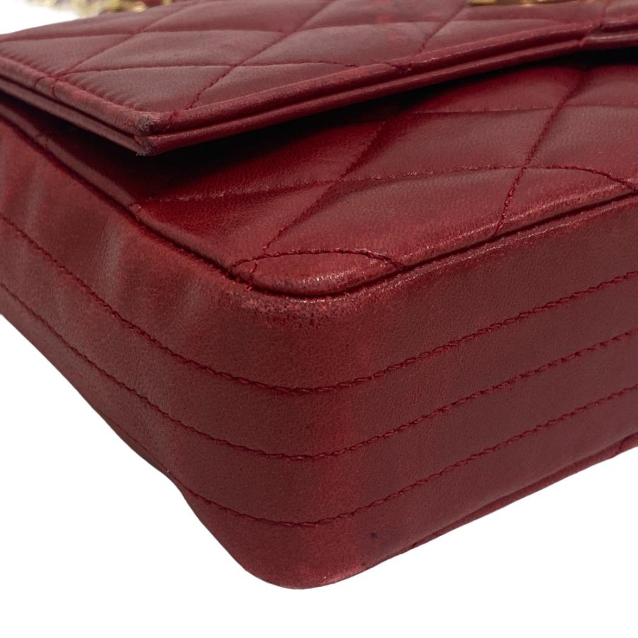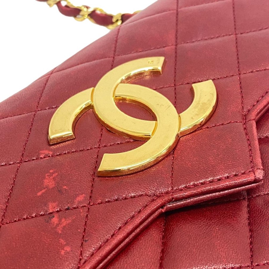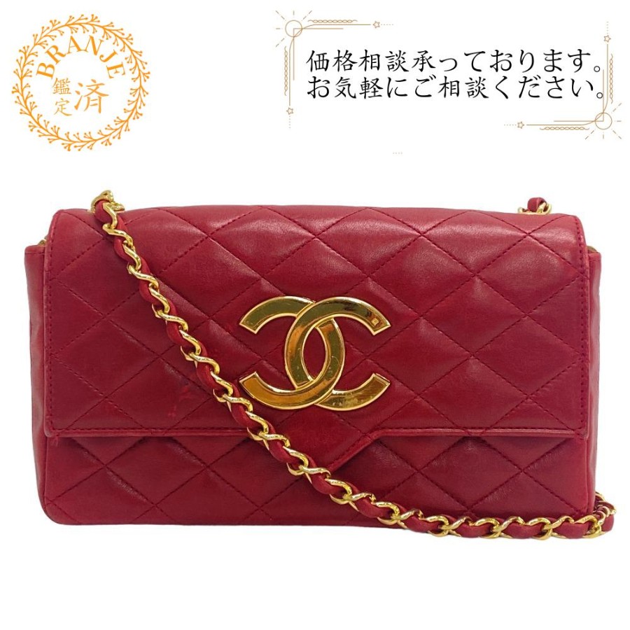 CHANEL Chanel Single Flap Double Chain Matelassé Coco Mark Shoulder Bag, Handbag, Crossbody Bag, Shoulder Bag, Brand, Red, Women's