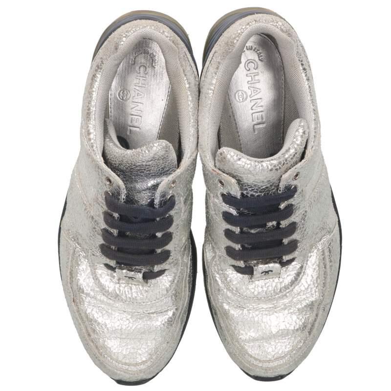 CHANEL CHANEL Size: 42 0 G31712 Cracked Leather Coco Mark Low-Top Sneakers