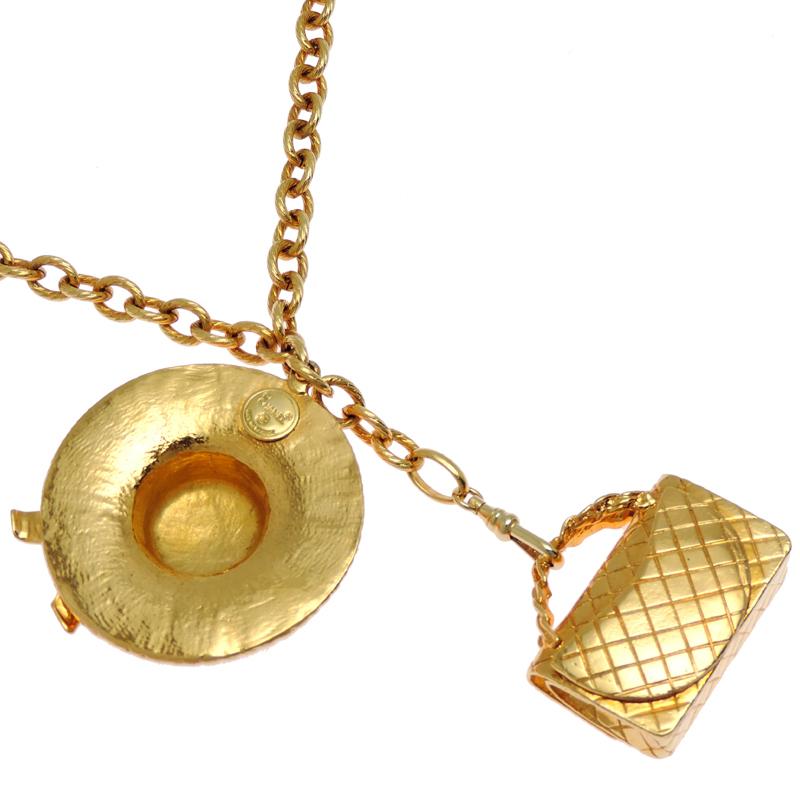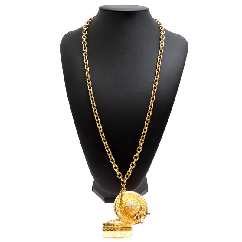Brand: CHANELProduct: Sun Hat Bag Necklace GPSize: Necklace Length: Approx. 76cmTop: Hat: Approx. H54.6 x W53.1mm / Bag: Approx. H35.3 x W41.8mmChain Width: Approx. 8.1mmClasp Maximum Width: Approx. 21.4mm*The top is detachable from the bag only.*Actual measurementsMaterial: GPAccessories: Storage BoxCondition: Used: ABBody: Scratches, dullness, slight discolorationSlight signs of use overall, but still in good condition.Storage Box: Scratches, dirt, peeling, damage. The color of the actual product may differ depending on your device and display.