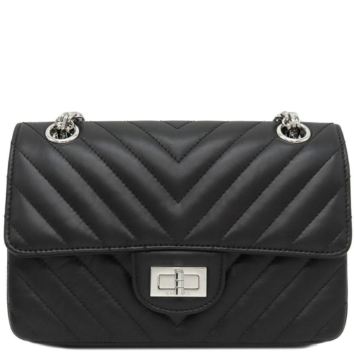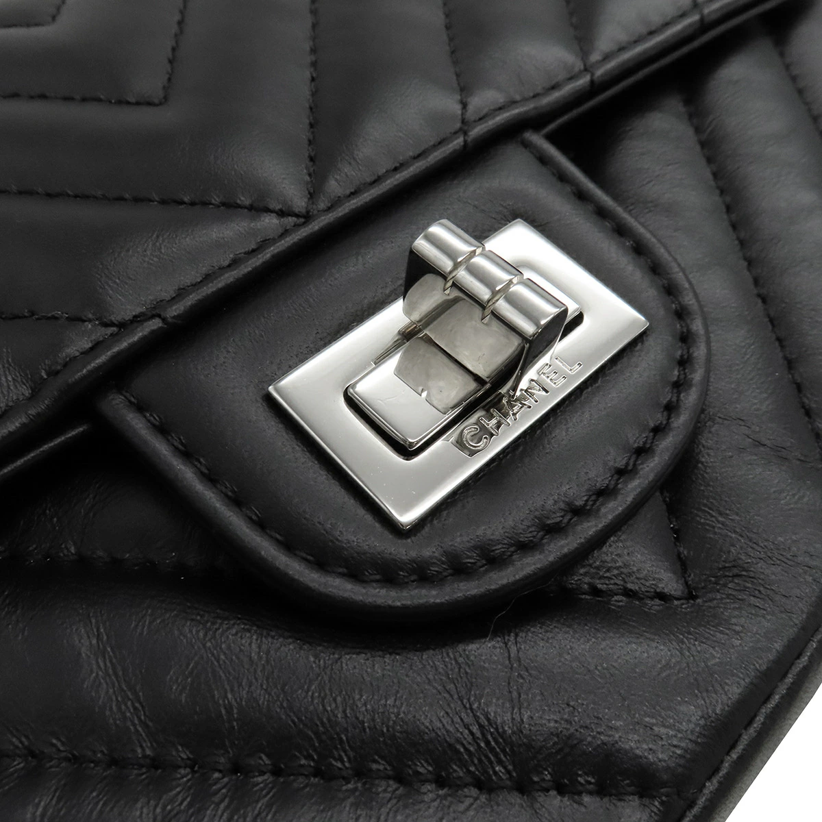 シャネル CHANEL ショルダーバッグ シェブロン 2.55 20 レザー ブラック 黒 Wチェーン Vステッチ シルバー金具 ランダムシリアル - レディース 【箱】定番 人気 美品 【中古】
