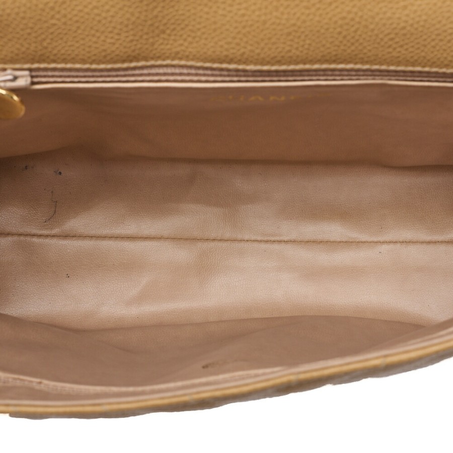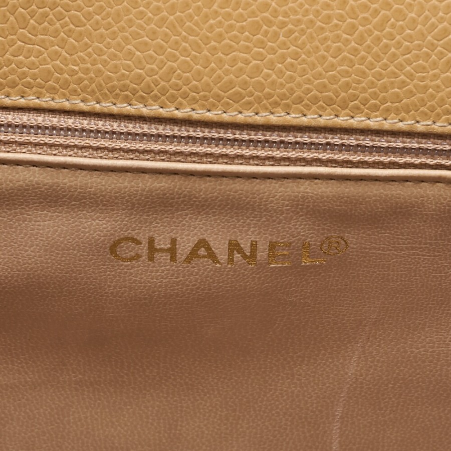 CHANEL Circle Coco Mark Single Flap Shoulder Bag, Caviar Leather, Beige (Gold Hardware), Women's Tote Bag, High-End Brand [Pre-owned]