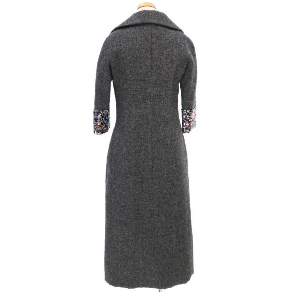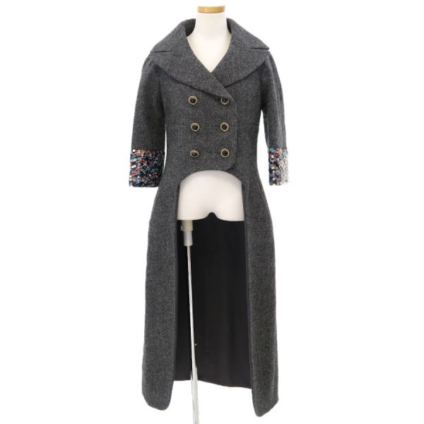 ■採寸#34 裄丈62cm B82cm 着丈42cm(前)122cm(後)■素材ウール100%裏地 シルク100%その他 コットン100%■コメントシャネルから前と後ろで長さが違うデザインのコートが入荷しました!袖のスパンコールがアクセントです。袖のスパンコールに乱れや折れ跡、塗装剥げ、後ろ身ごろ裏地左ウエスト付近にボタン跡、後ろ裏左肩甲骨周りに糸ツレやスレ、ボタンにスレキズやくすみ、全体に毛羽立ちやシワ、収納跡、ヨレがみられるためBランク評価になります。