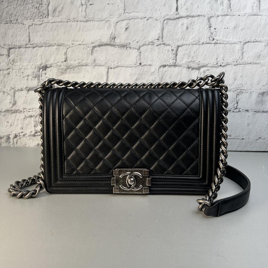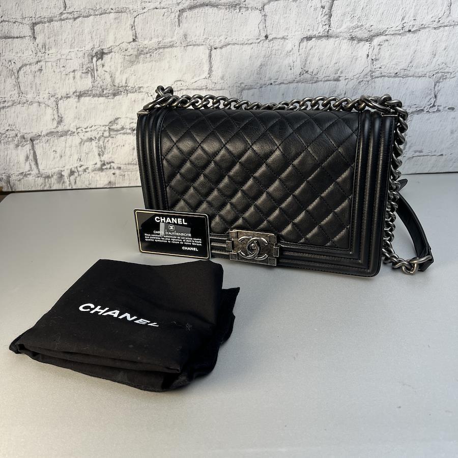 良品 CHANEL シャネル ココマーク ボーイシャネル ラムスキン ショルダーバッグ ブラック A-9009
