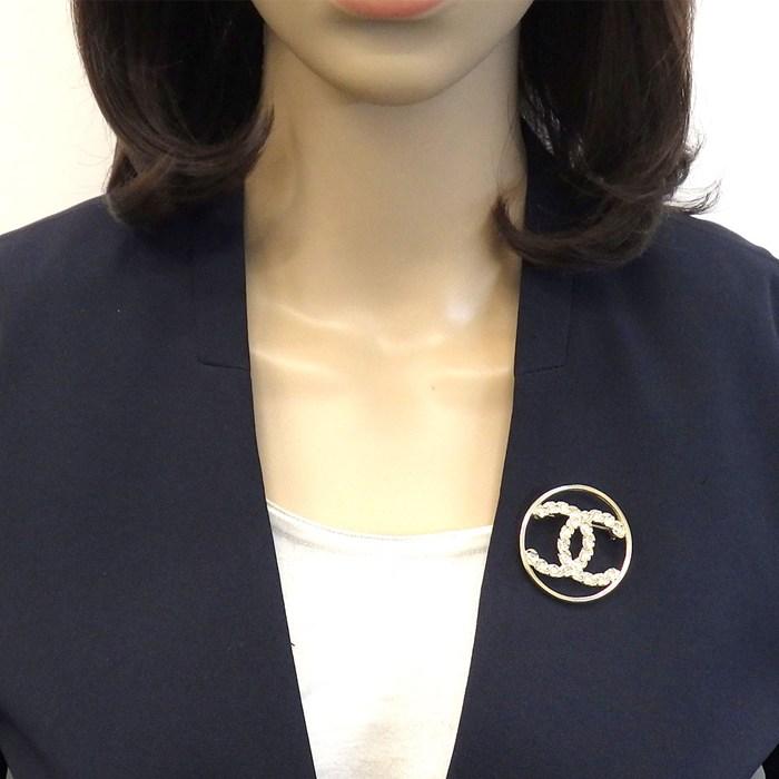 ■商品名CHANEL ブローチ ココマーク 2019年 ラウンド サークル ラインストーン GP 【中古】