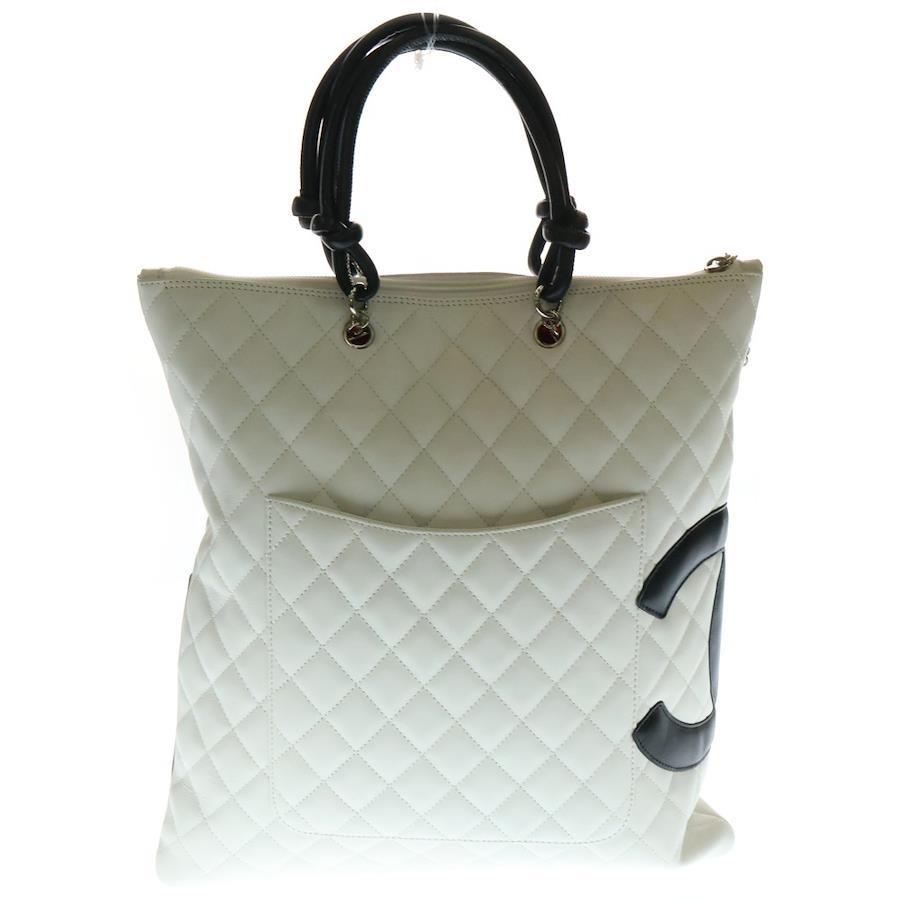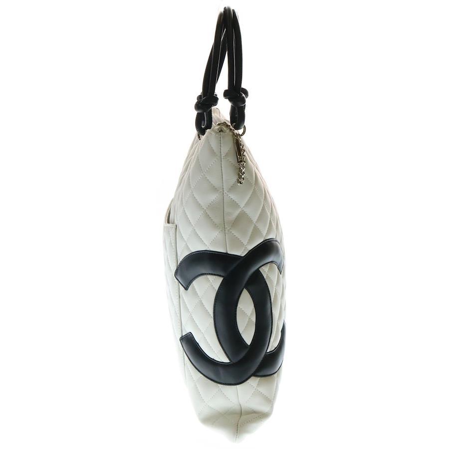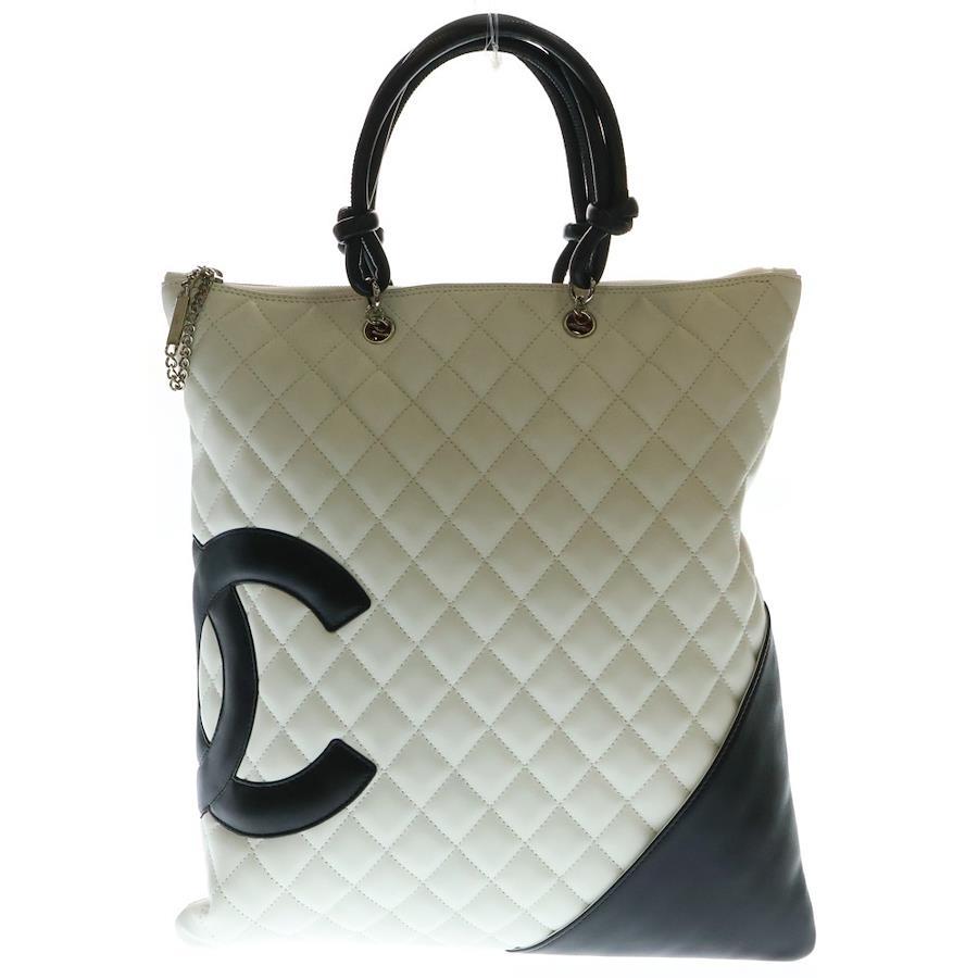 [モデル]ココマーク カンボンライン ラムスキン レザーハンドバッグ ホワイト/ブラック レディース
