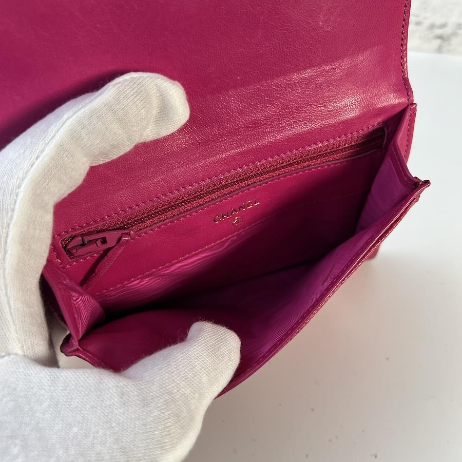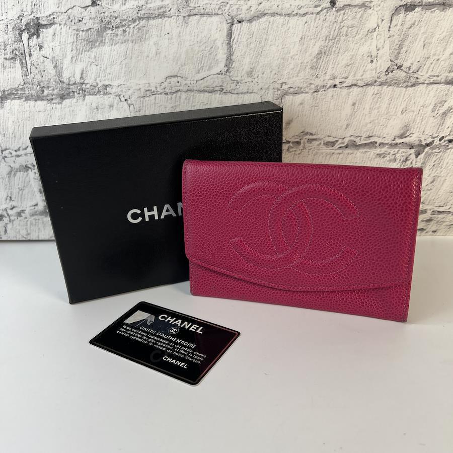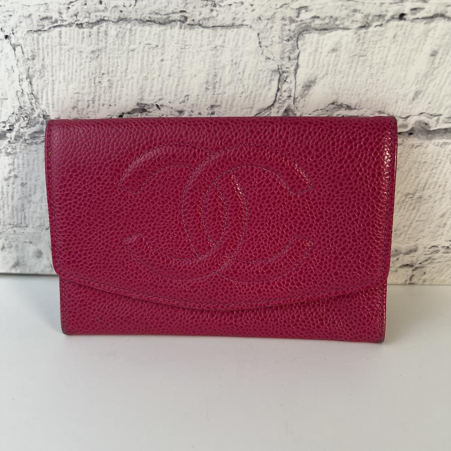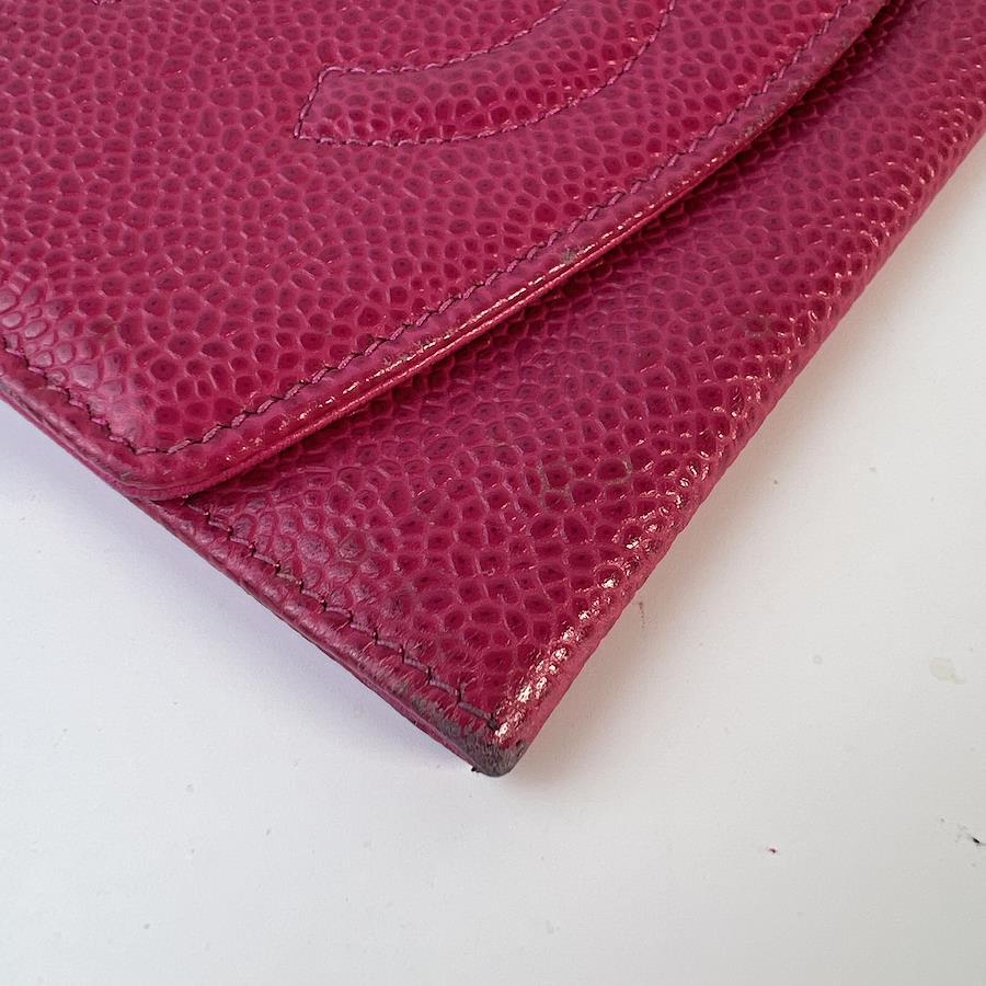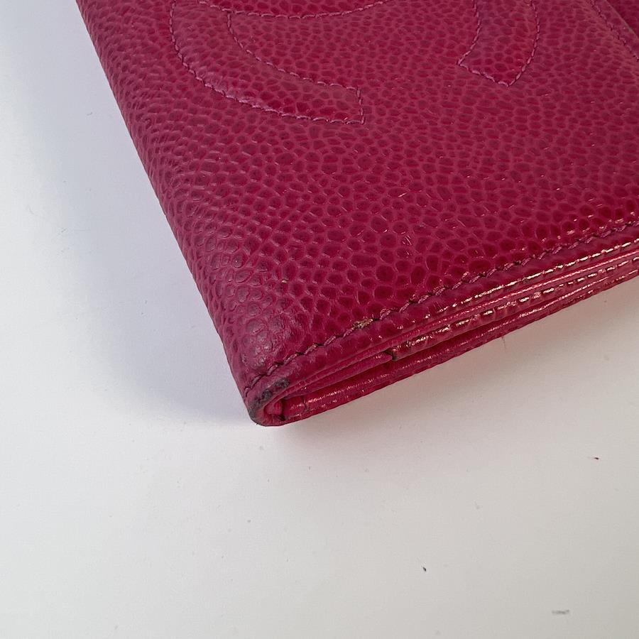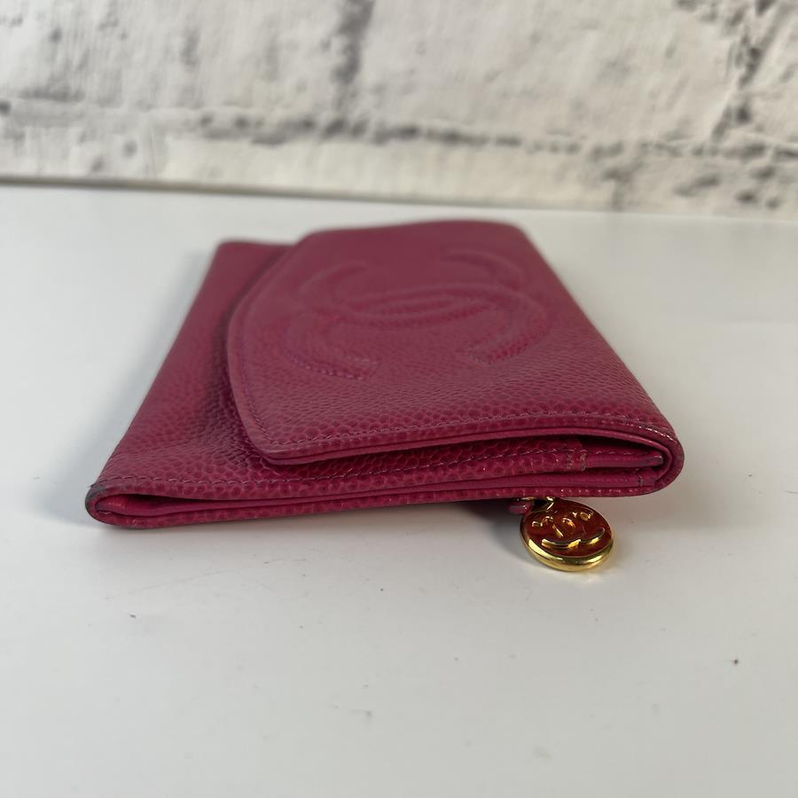 良品 CHANEL シャネル ココマーク キャビアスキン 財布 ピンク A-8397