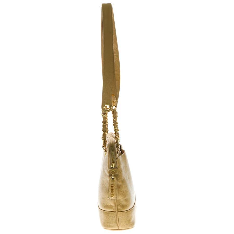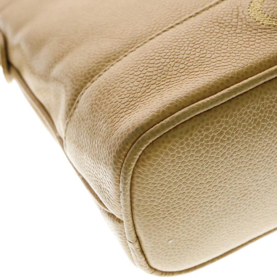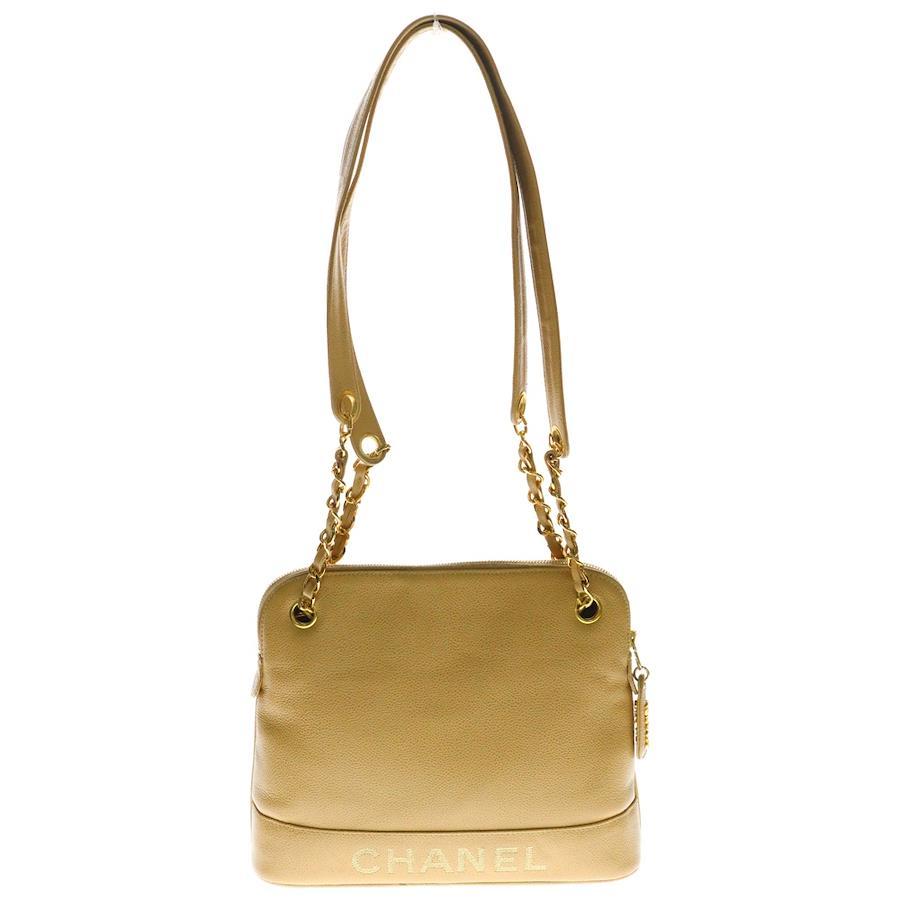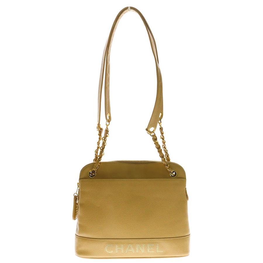 [モデル]ココマーク シャネルロゴ キャビアスキン レザーチェーンショルダーバッグ ベージュ レディース