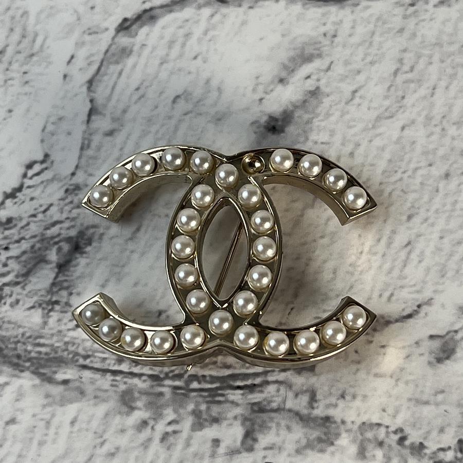 【アイテム】良品 CHANEL シャネル ココマーク フェイクパール 05V ブローチ A-8355