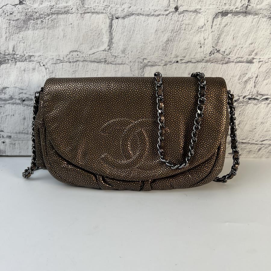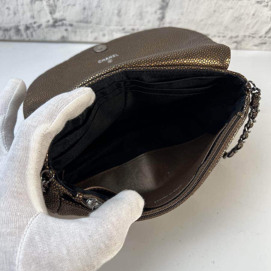 美品 CHANEL シャネル ココマーク ハーフムーン カーフスキン ショルダーバッグ ブラウン A-8861