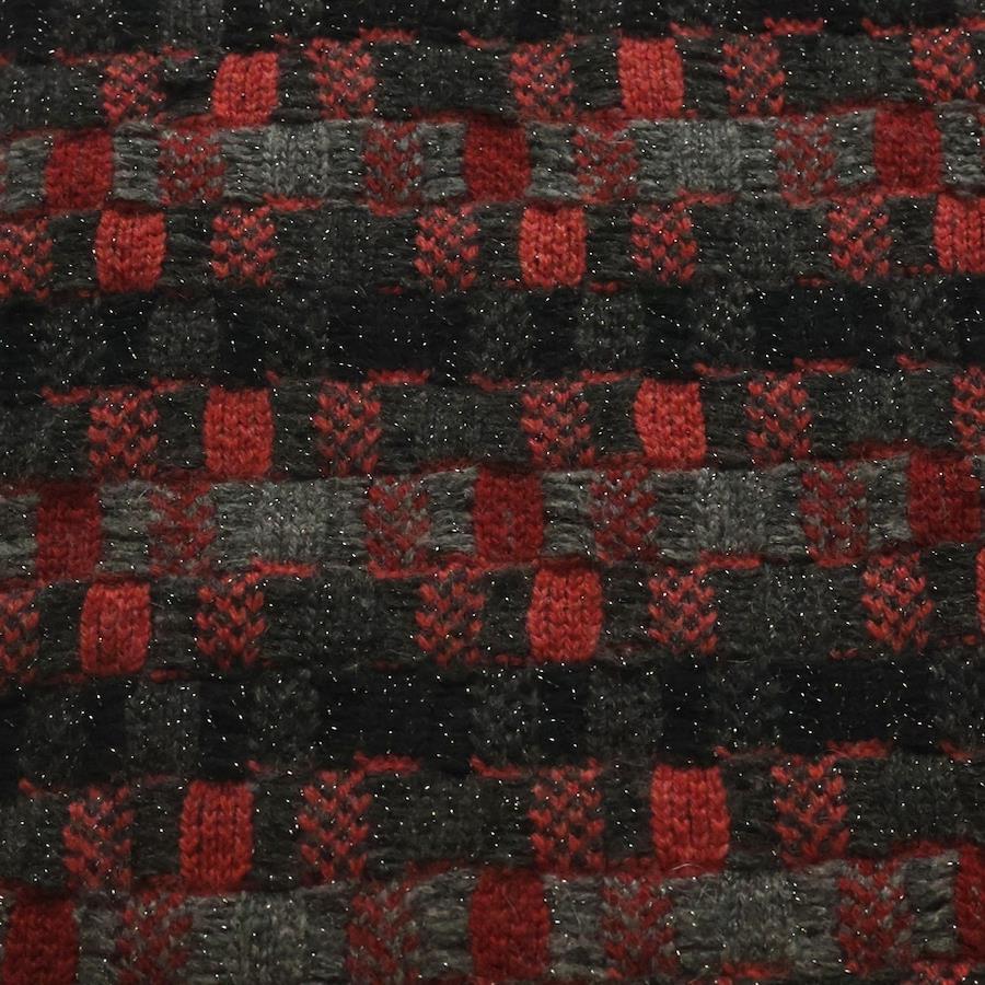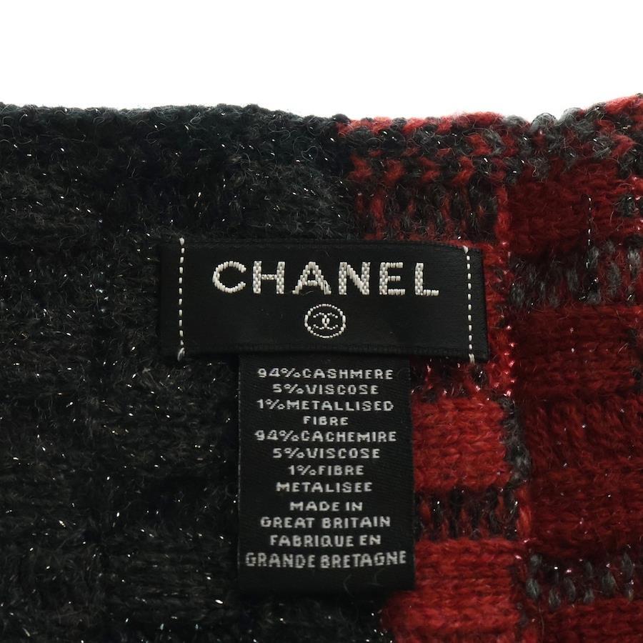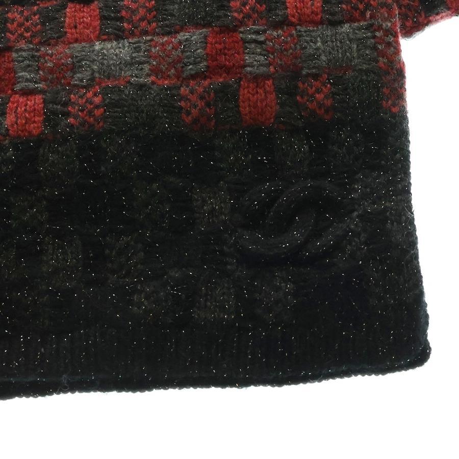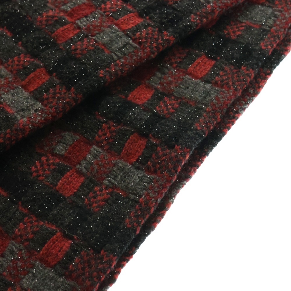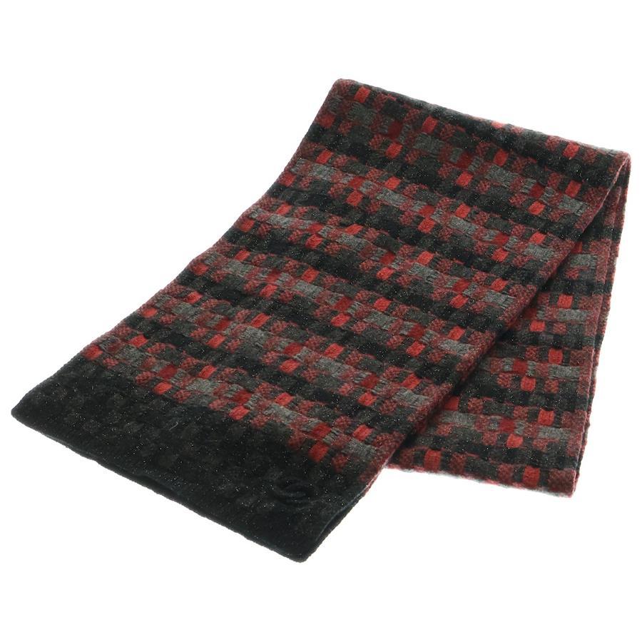 [モデル]ココマーク ラメジャガード ボーダー総柄 カシミヤニット マフラー レッド/ブラック