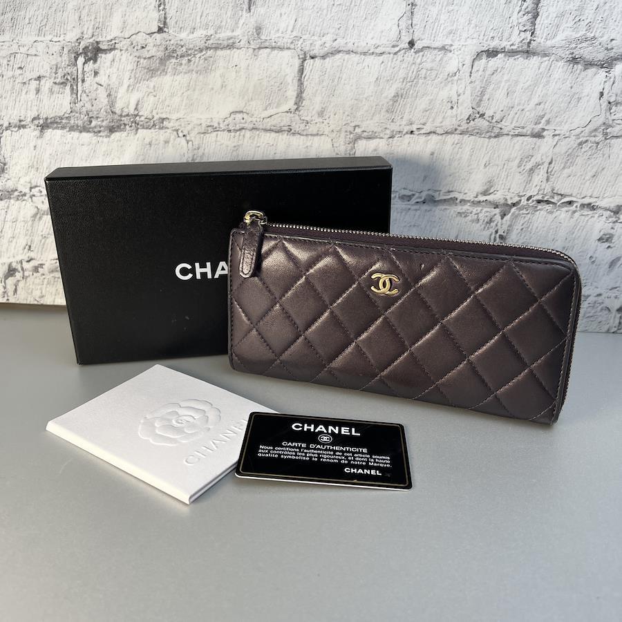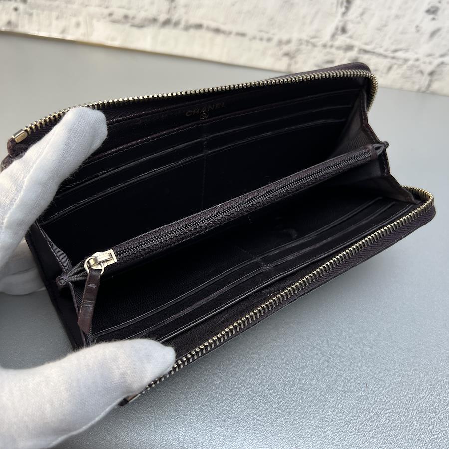 【アイテム】良品 CHANEL シャネル ココマーク ラムスキン 長財布 パープル A-9521