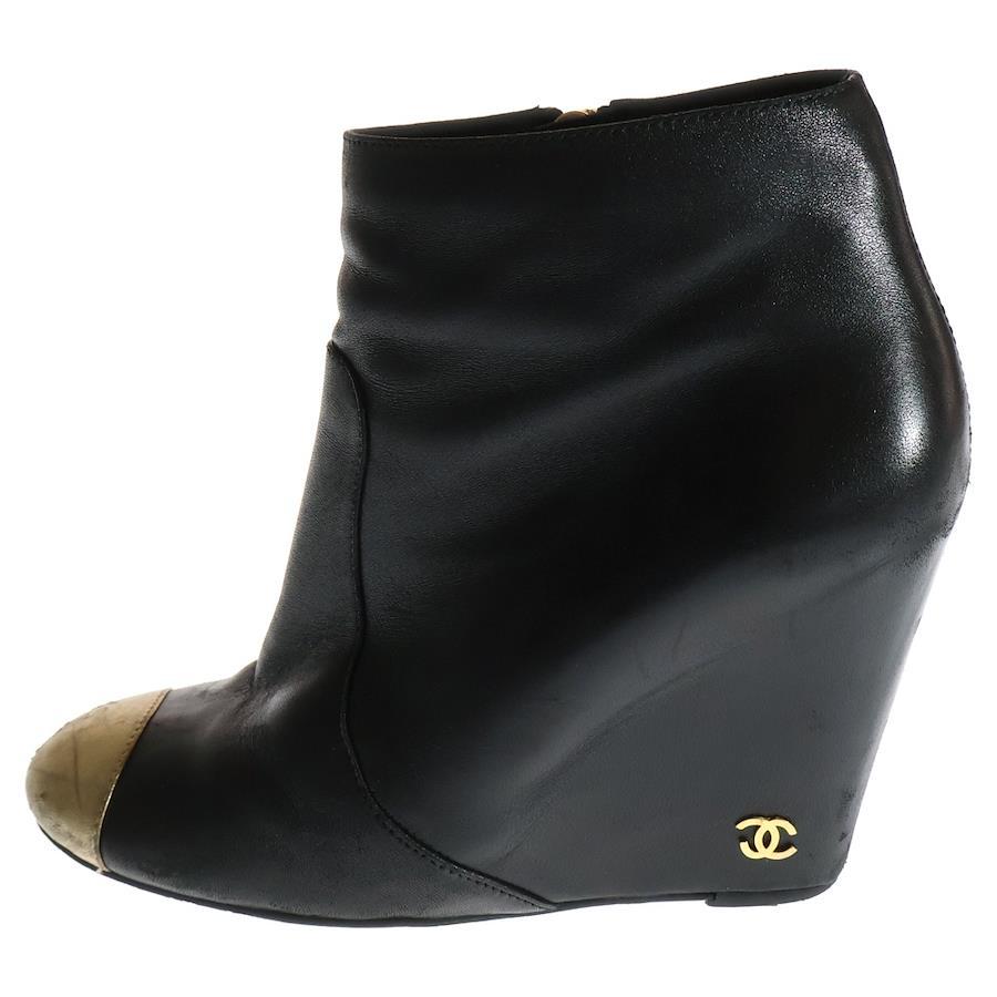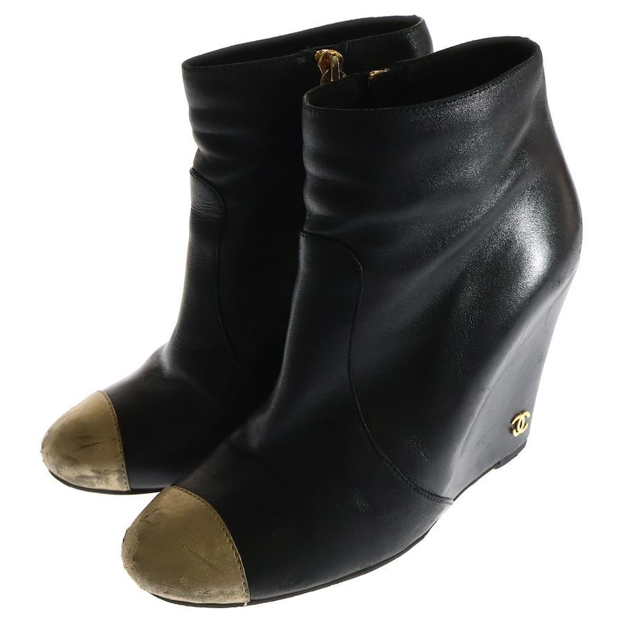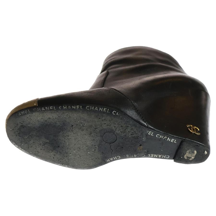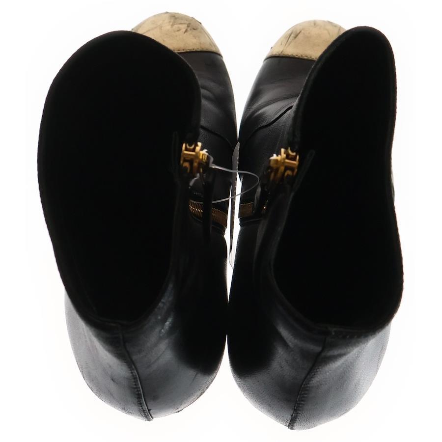 [モデル]ココマーク レザー ショートブーツ ブラック/ゴールド レディース