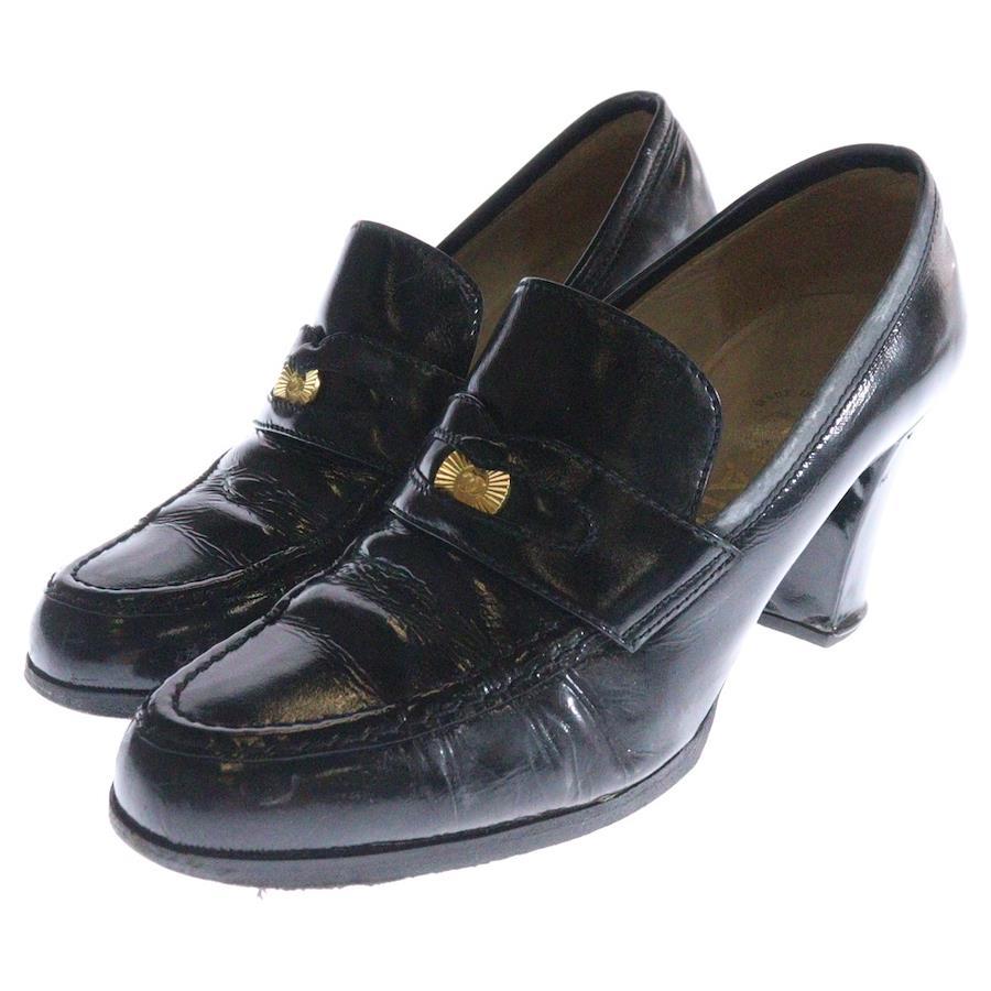 Chanel Coco Mark Loafers with Heels, Black, Size 36 1/2, 38 Black