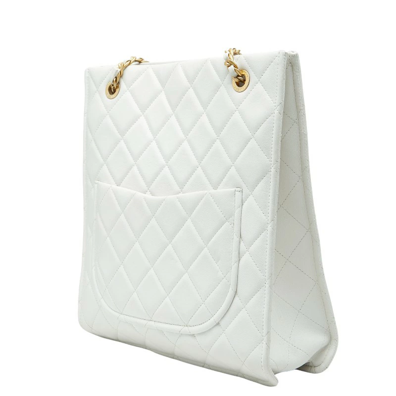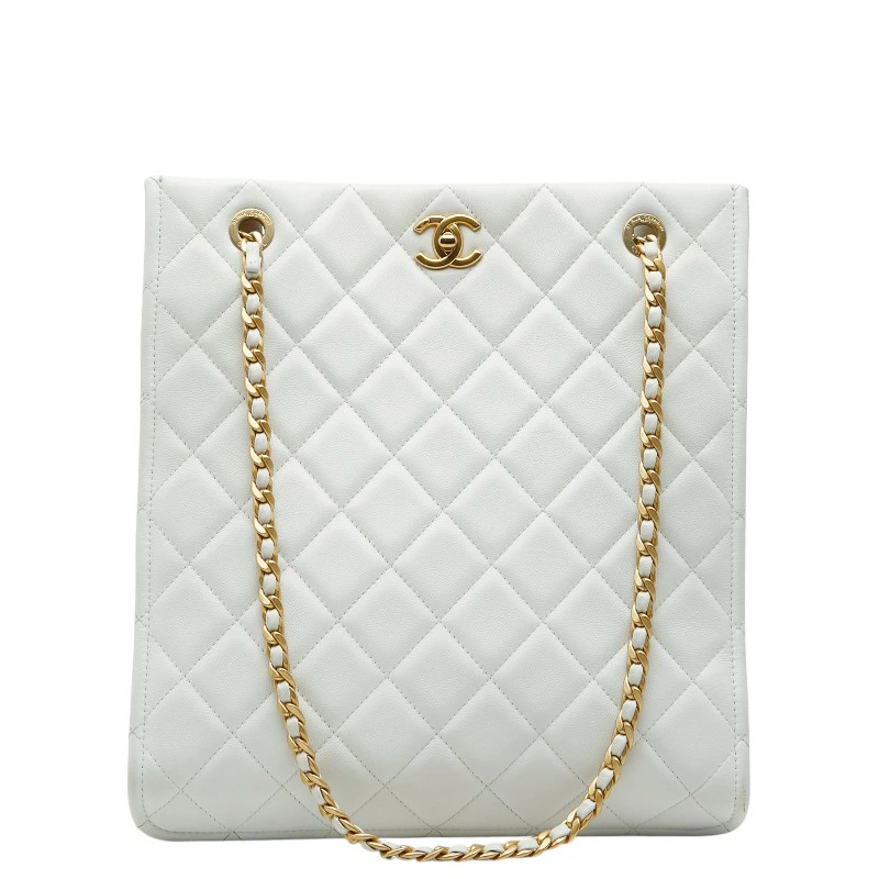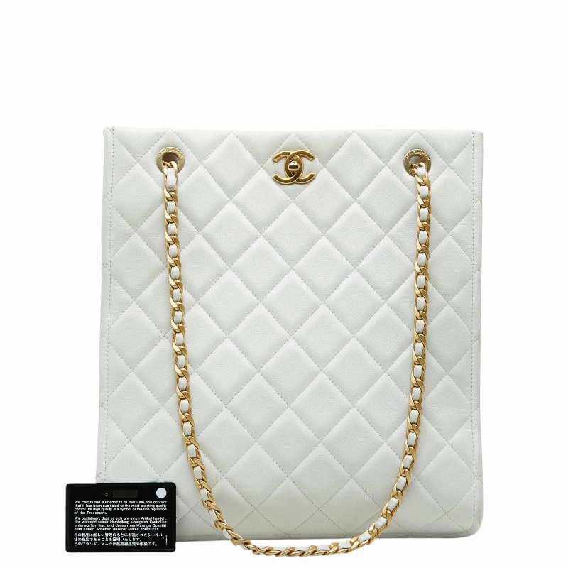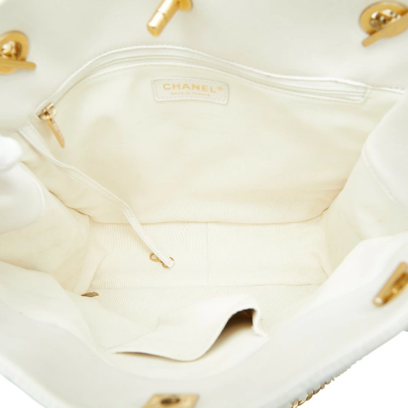 Chanel Coco Mark Matelassé Chain Tote Bag Shoulder Bag White Caviar Leather Women's CHANEL [Pre-owned]