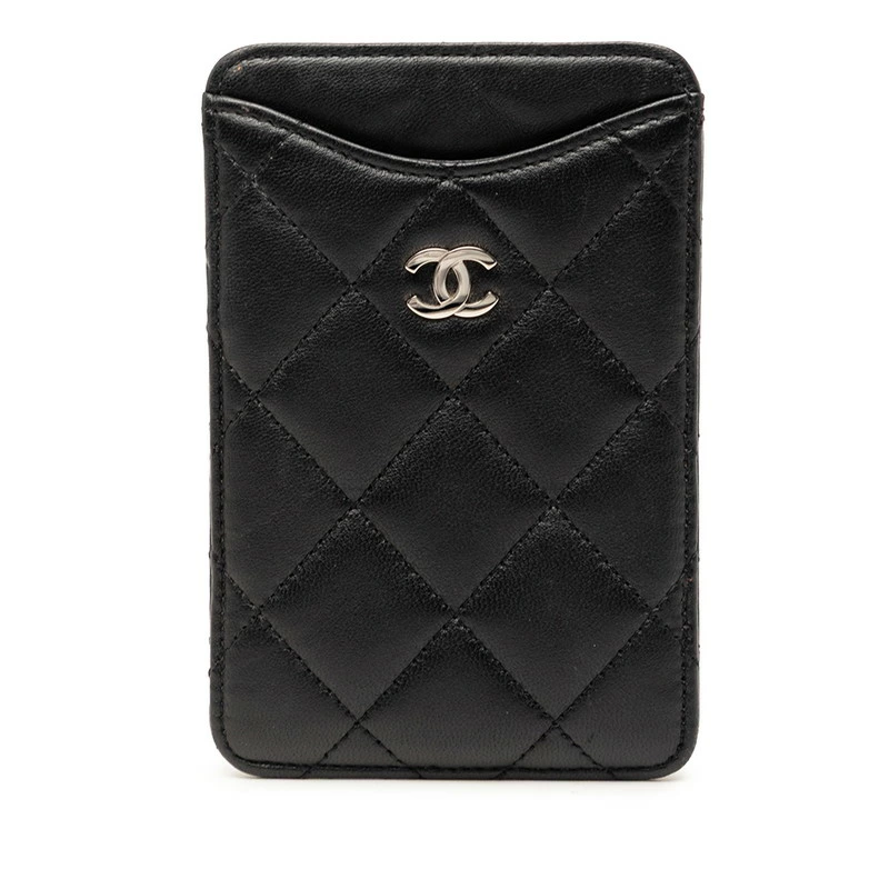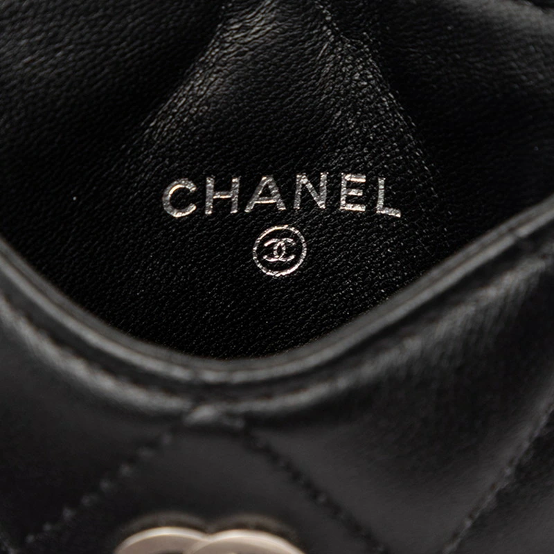 - シャネル ココマーク マトラッセ 定期入れ パスケース ブラック ラムスキン レディース CHANEL 【中古】