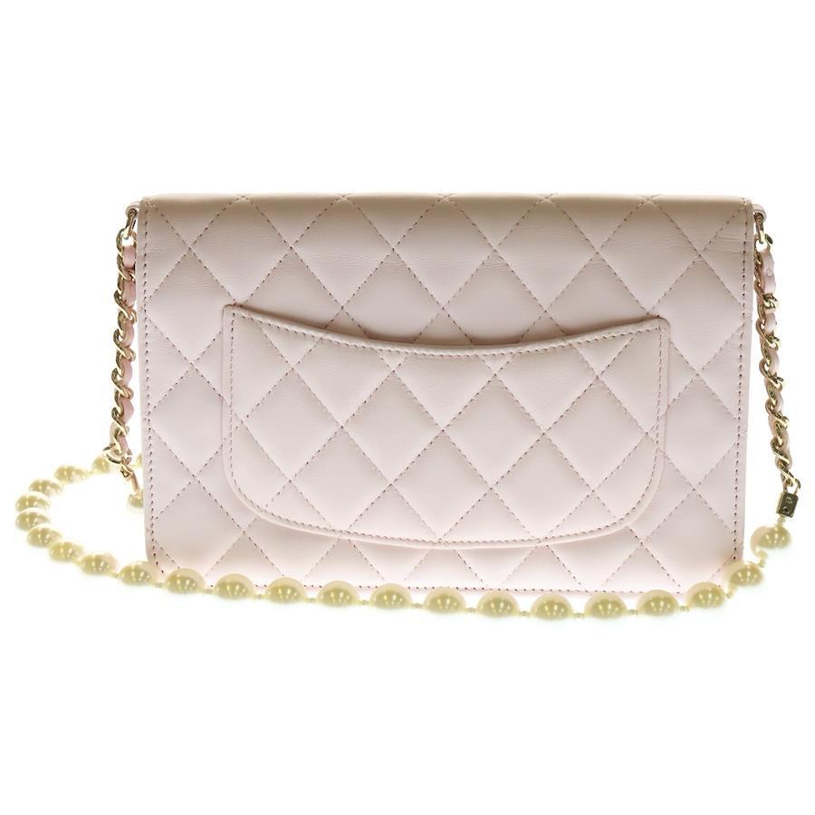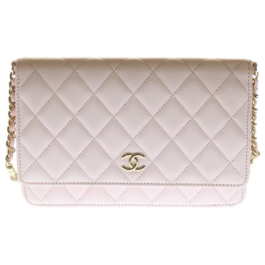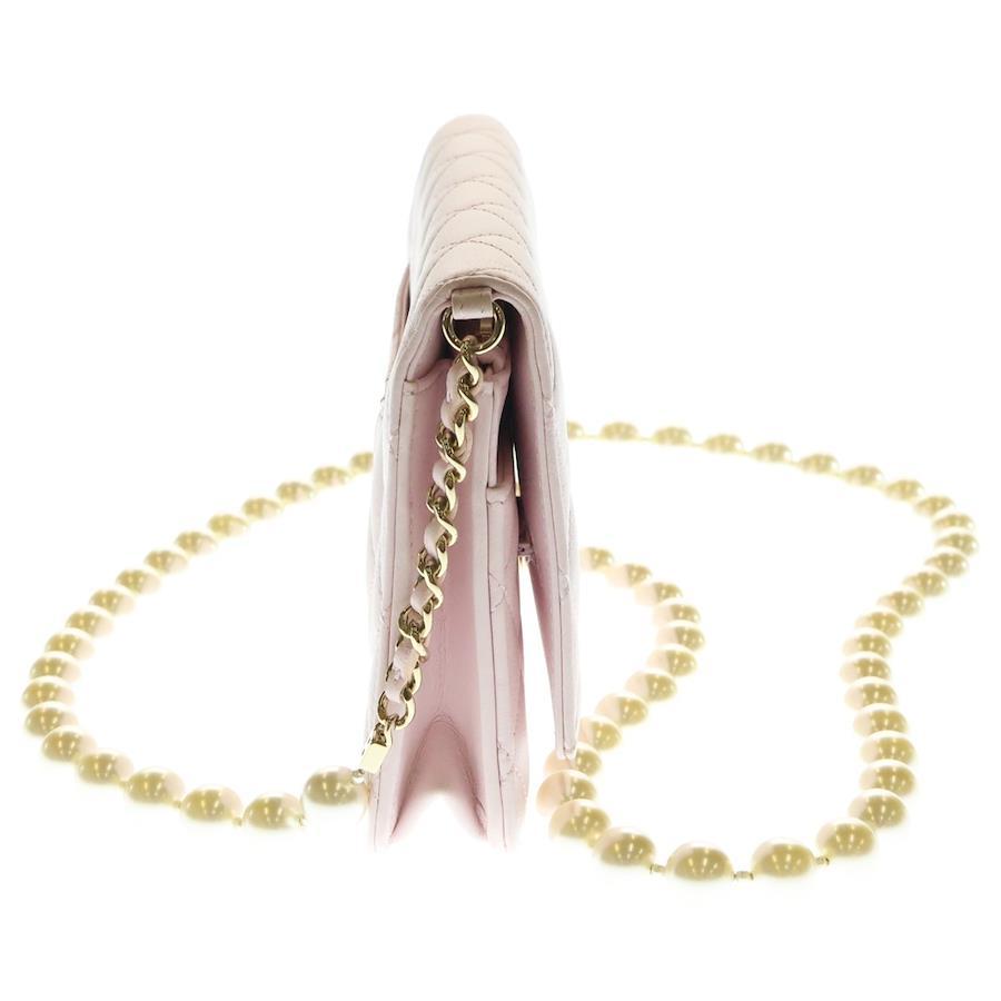[モデル]ココマーク マトラッセ ラムスキン パールチェーンレザーショルダーバッグ チェーンロングウォレット ピンク レディース AP2579