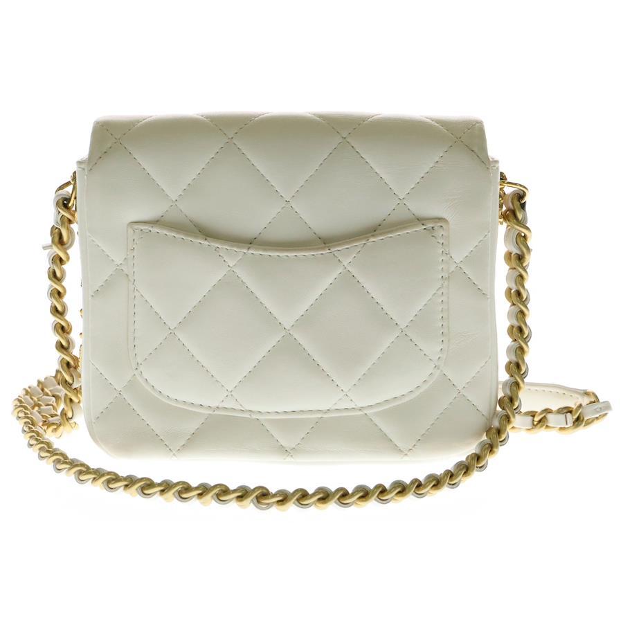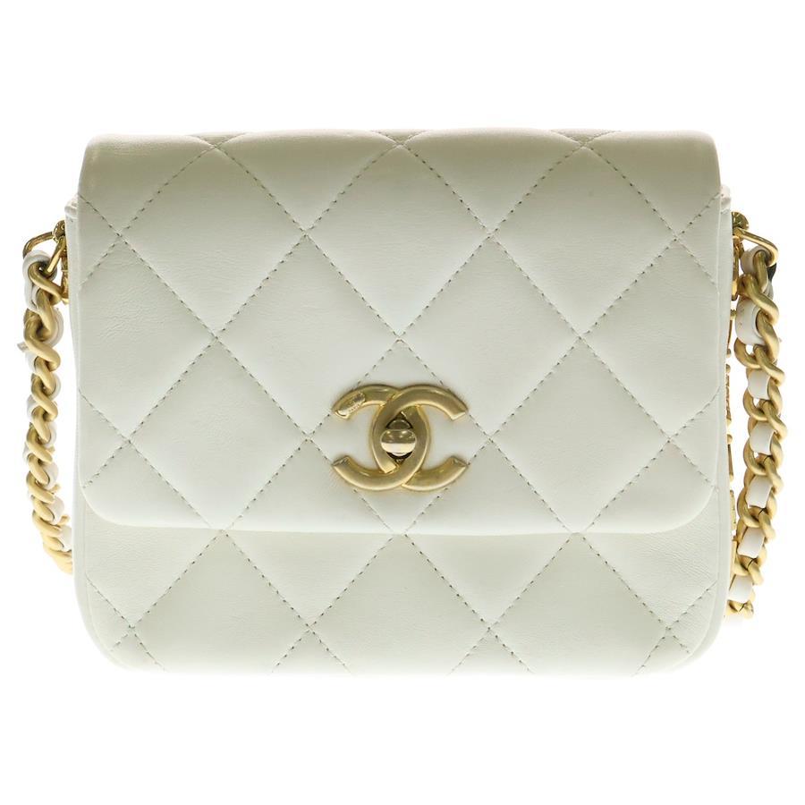 [モデル]ココマーク ミニマトラッセ17 ラムスキン レザーチェーンショルダーバッグ ホワイト/ゴールド レディース