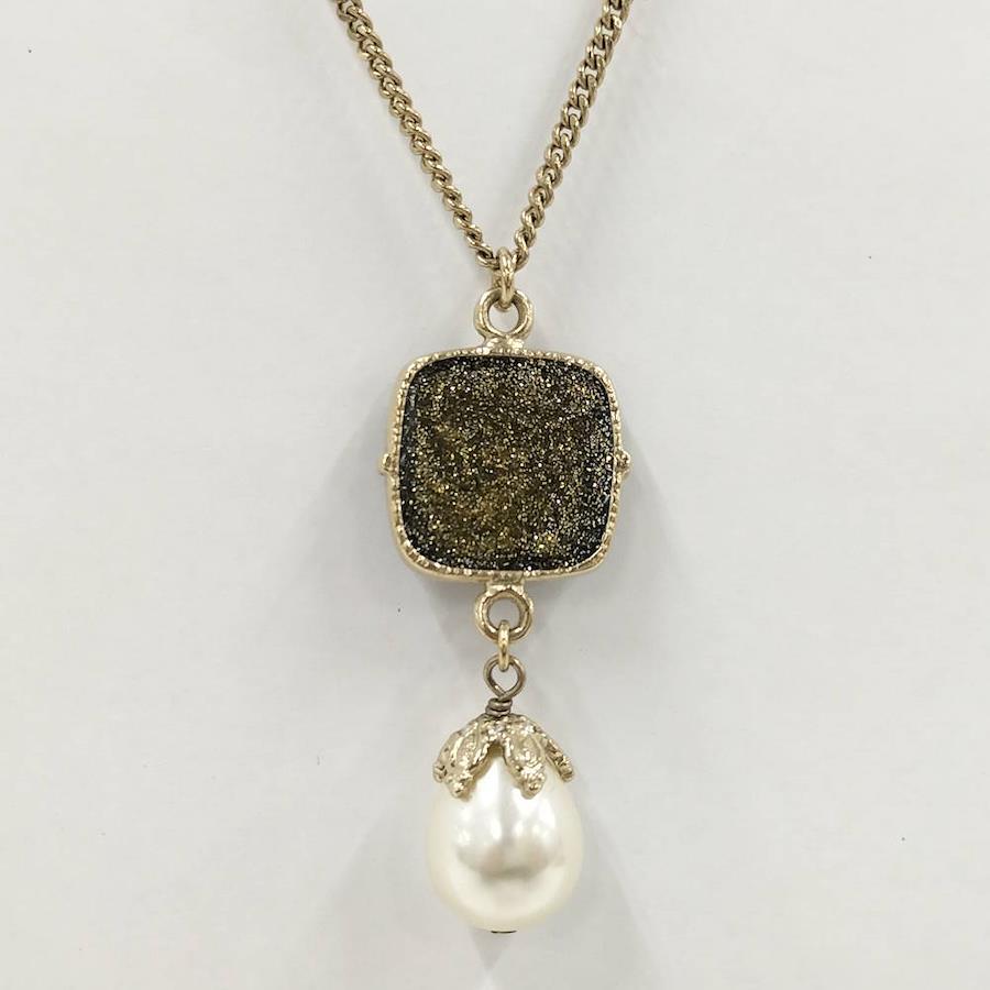 [商品情報]・カラー:ゴールド・素材/ライン:メッキ・首周り:最大約41(cm)・トップ(パール含む):最大約W1.9×H4.4(cm) 幅約0.7(cm)
