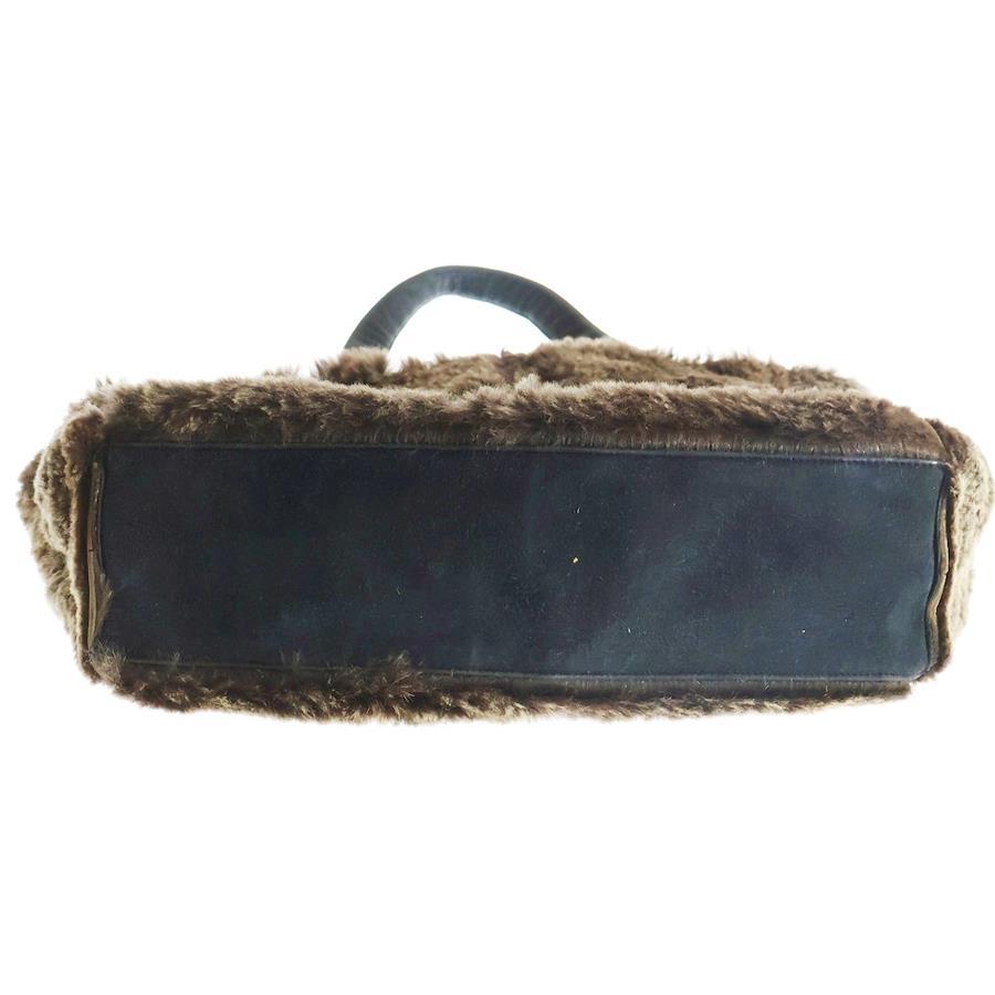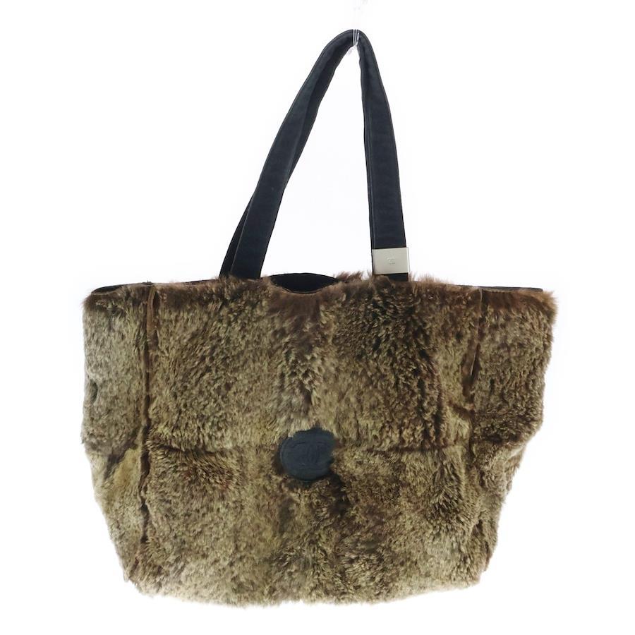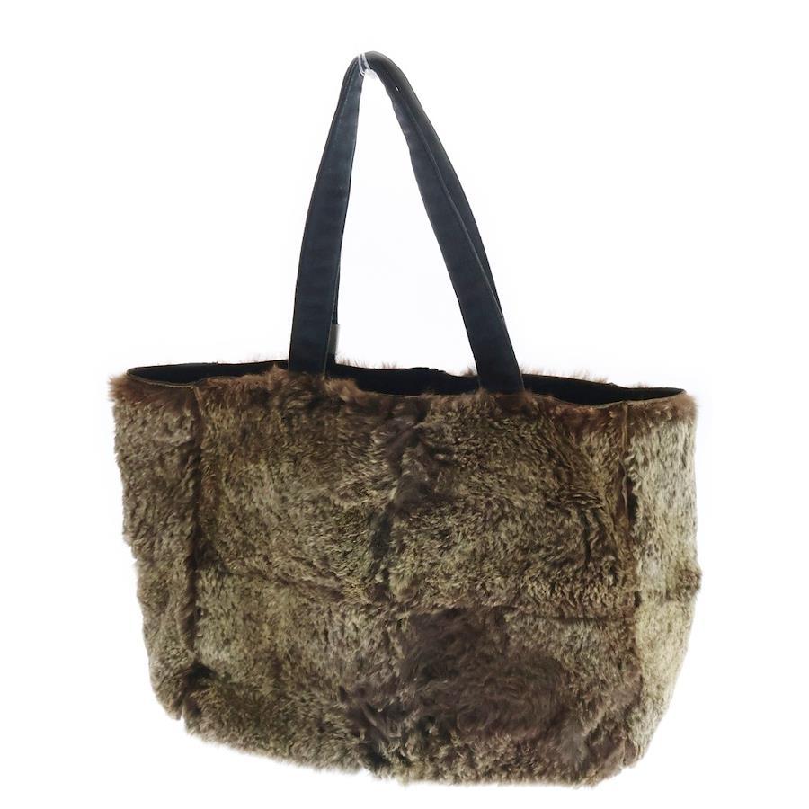 [モデル]ココマーク ラビットファー トートバッグ ハンドバッグ ブラウン