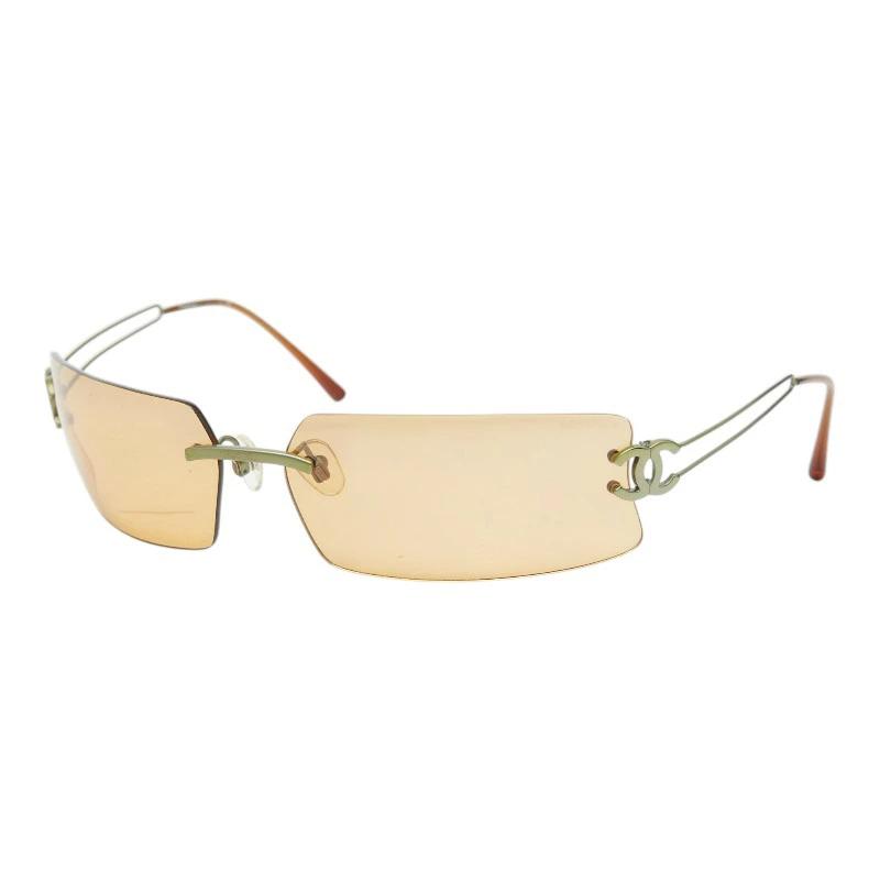 シャネル ココマーク リムレス サングラス ブラウン メタル プラスチック レディース CHANEL 【中古】