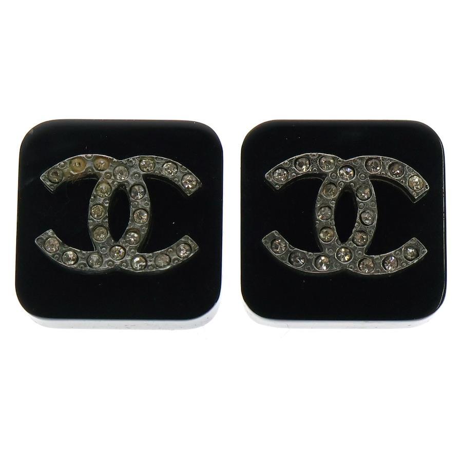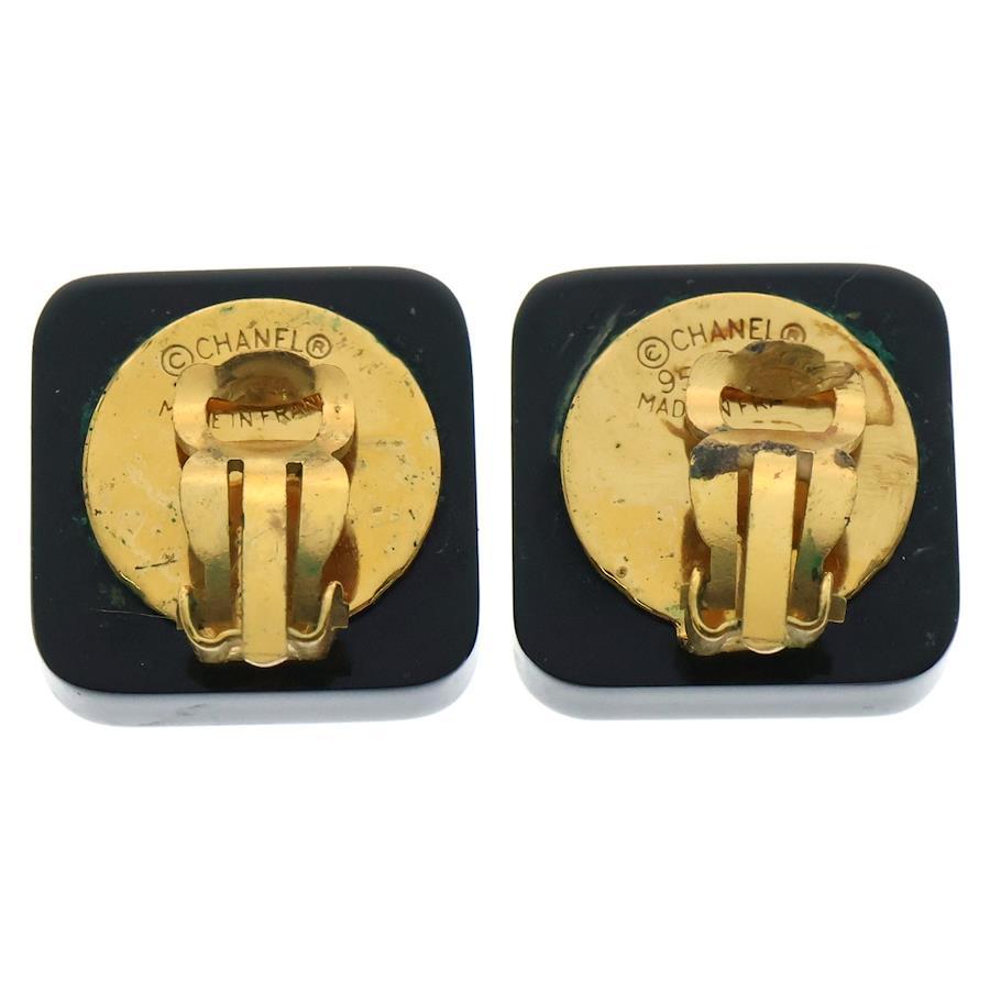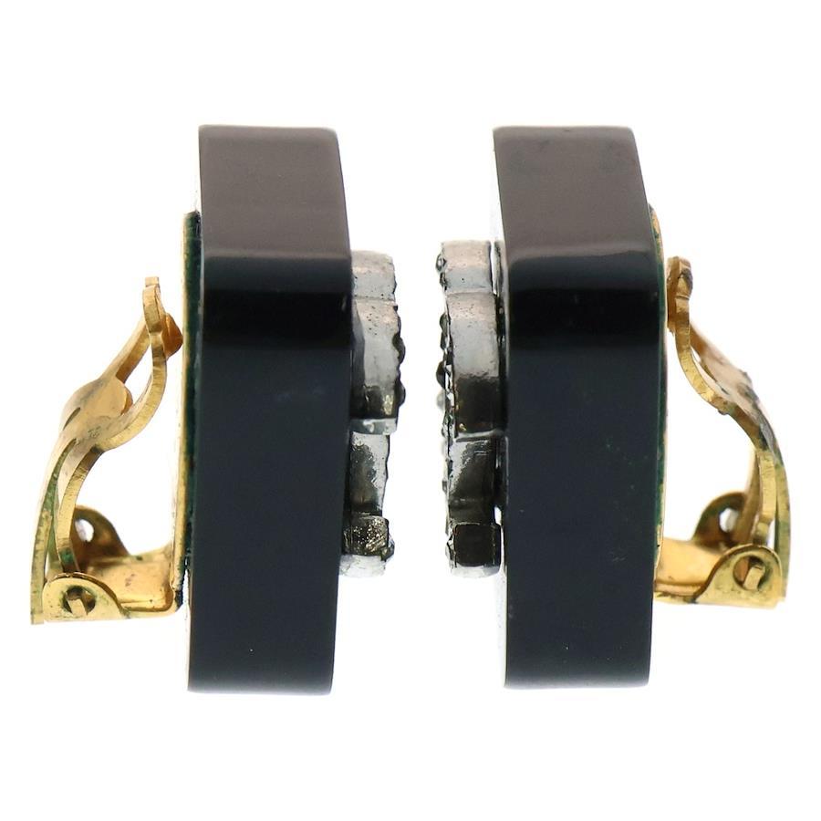 [モデル]ココマーク スクエア イヤリング ラインストーン ブラック 95A