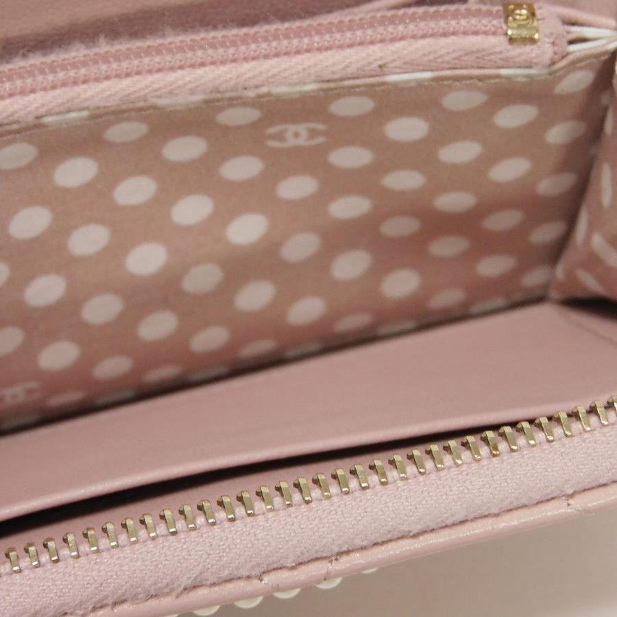 キルティングステッチが施された、ラムスキンにシャネルのココマークパールが装飾された「ココ パール ジップ コインパース」ラウンドファスナー式コインケースです。
