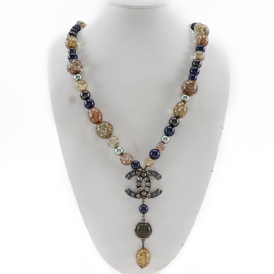 CHANEL COCOmark 06P Necklace, Metal, Faux Pearl, and Rhinestones, Multicolor, Approx. 147g, Pre-owned, Women's