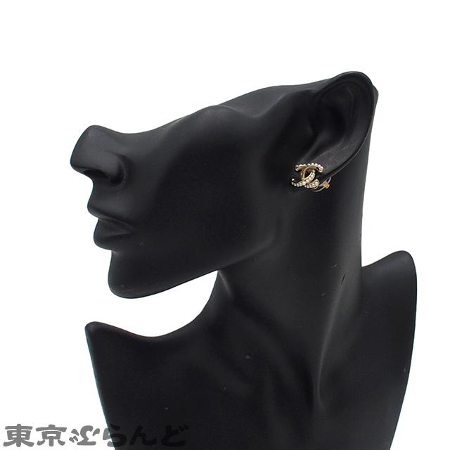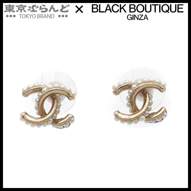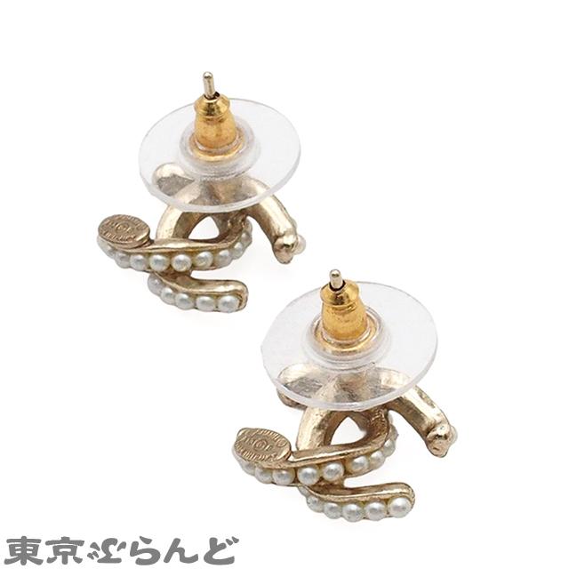 CHANEL COCOmark A13B Gold Metal Costume Pearl Earrings for Women