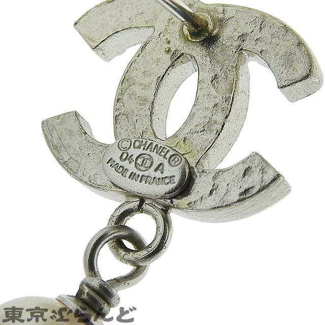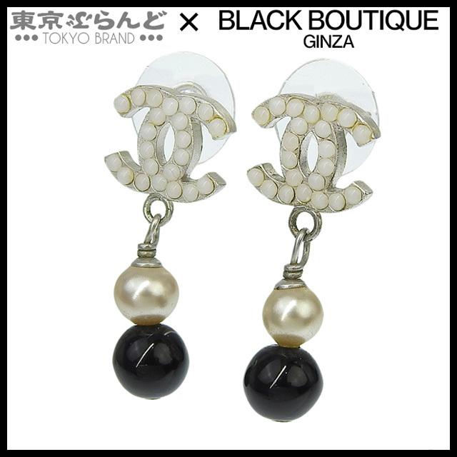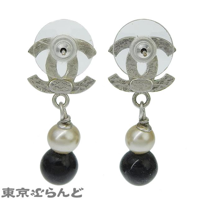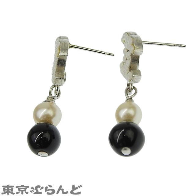 CHANEL COCOmark Earrings 04A Silver x Black Metal with Faux Pearl Earrings for Women